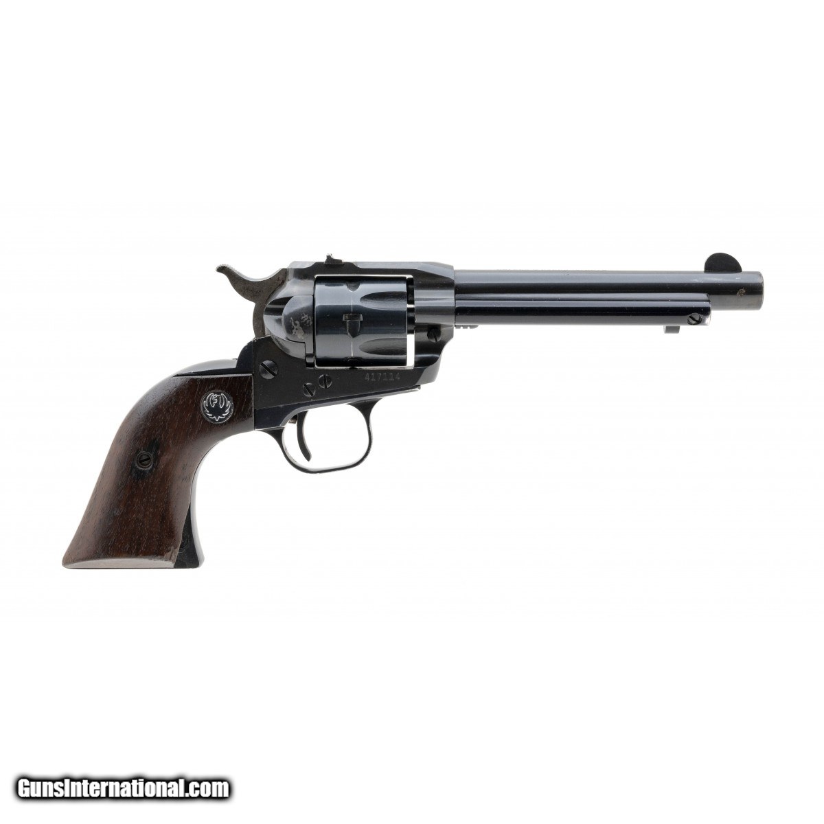 Description: " SN: 417114. Circa 1965. .22 Long rifle with a 5.5"" barrel, bore is excellent. Single action revolver with blued frame. Has handling wear on receiver, barrel and chipping in toe of grips. Overall condition is good. SOLD |