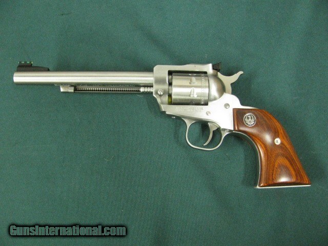 Description: 6953 Ruger Single 9 22 mag, NEW IN BOX, 6 inch barrel, 9 shot engraved cylinder, wood composite grip, stainless steel, adjustable rear site, fiber optic front site, not a a mark on it, from private collection,all papers. SOLD Handgun Caliber: .22 WMR (.22 Magnum) |