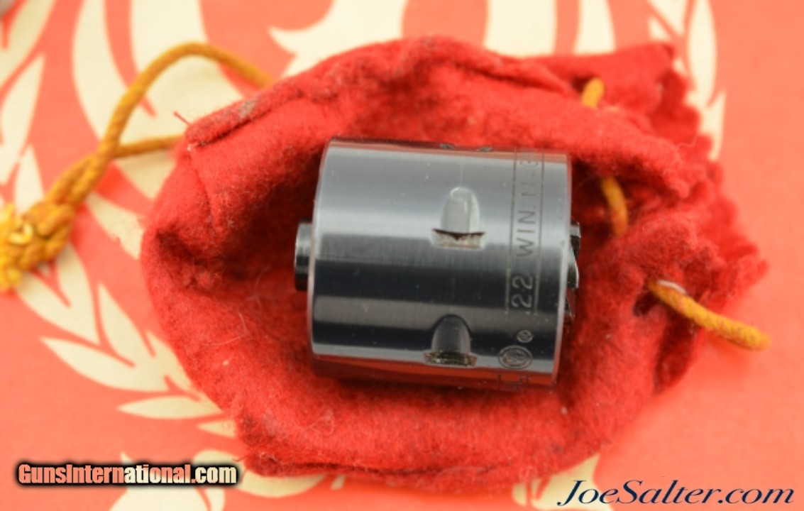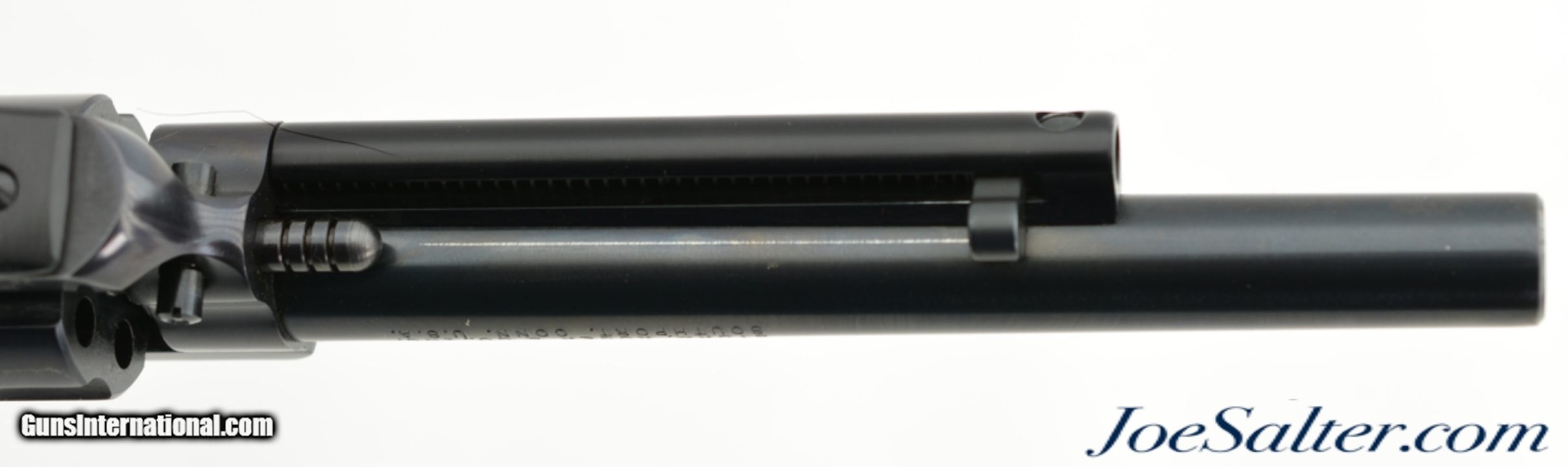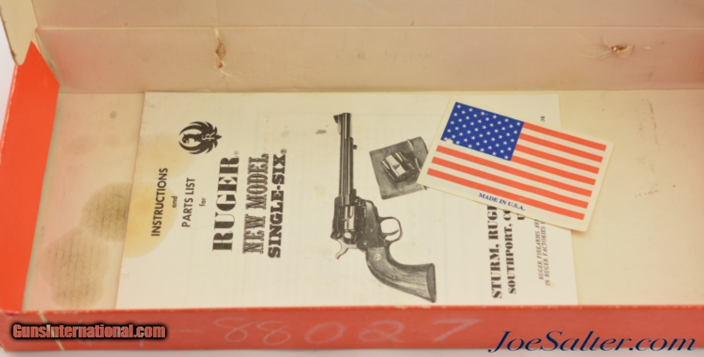 Description: Serial #64-88027, .22 LR/.22 WMR, 6.5 inch barrel with a bright, excellent bore. This is the Ruger New Model Super Single Six convertible revolver manufactured in 1976 and marked on the barrel "MADE IN THE 200th YEAR OF AMERICAN LIBERTY". In excellent condition the convertible revolver retains virtually all, 96-98% of the original blue finish on the barrel, frame and cylinder with a very slight turn ring on each of the cylinders and some slight wear at the muzzle. The walnut grips are in excellent condition. It comes in the original cardboard box numbered to the gun with the spare 22 magnum cylinder, numbered to the gun and the original manual. An excellent Bicentennial year Single Six that would be a welcome addition to any Ruger Collection. FFL SOLD |