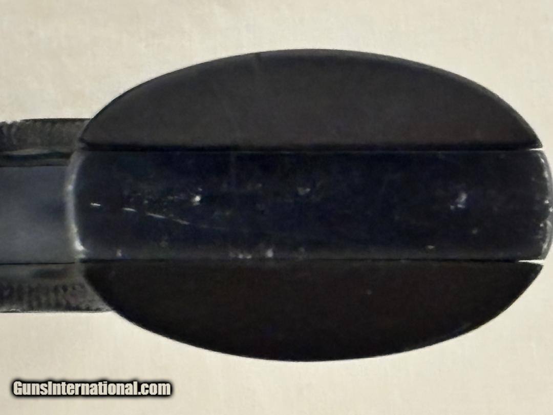 Description: All original to include its checkered hard rubber grips with proper black eagle medallions. XR3 grip frame as used on the early models from 1953 to 1962. Offset "long throw" steel ejector rod housing, serrated ejector rod head, serrated face on its front sight blade, desireable "skinny" trigger of the first models, not safety update, plus non drilled through base pin latch. Referred to as a Type 3 Flat Gate by collectors. Shipping will be $30 by Priority Mail from my FFL to yours with tracking and full value of insurance. No sales tax as this is from an individual. Handgun Caliber: .22 Long Rifle Manufacturer: Ruger Model: Single-Six Flat Gate Serial Number: 22895 Barrel Length: 5-1/2 Bore Info: near excellent Chambers: near excellent Condition: near excellent Metal Condition: near excellent Bore Condition: near excellent Barrels: near excellent Barrel Type: round Action: Single Triggers: skinny Finish: Blued Sights: Drift adjustable Manufacture Date: 1955 Item Location: Maine Grips: Checkered hard rubber Price: $595.00 Shipping: $30.00 Contact Seller |