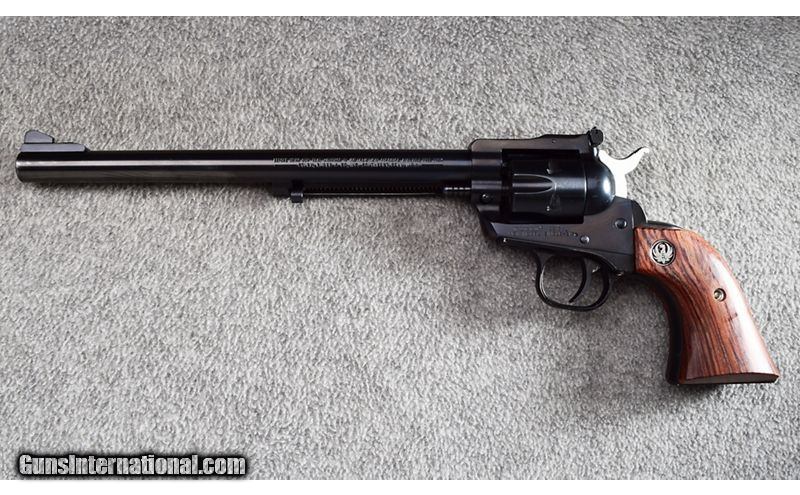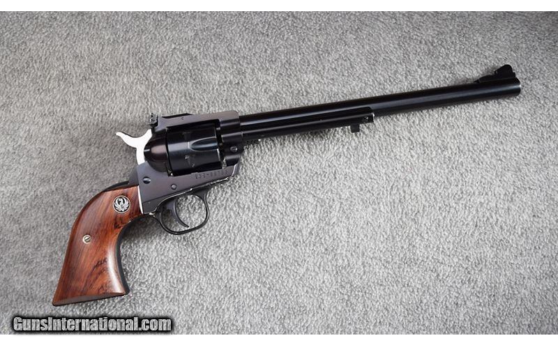 Description: This Ruger was manufactured in 1993 and remains in excellent overall condition. Gun shows some blue loss under trigger on right side and some light blue loss at muzzle. Complete with original box, manual and two cylinders. Beautiful Gun! .22 MAG SOLD Metal Condition: Very Good Wood Condition: Excellent Bore Condition: Excellent Barrels: 9 1/2 Triggers: Factory - Single Action Butt Pad: Uncheckered Walnut Grips Weight: 38 oz. Sights: Serrated Blade Front - Adjustable Square Notch Rear Item Location: Wheeling |