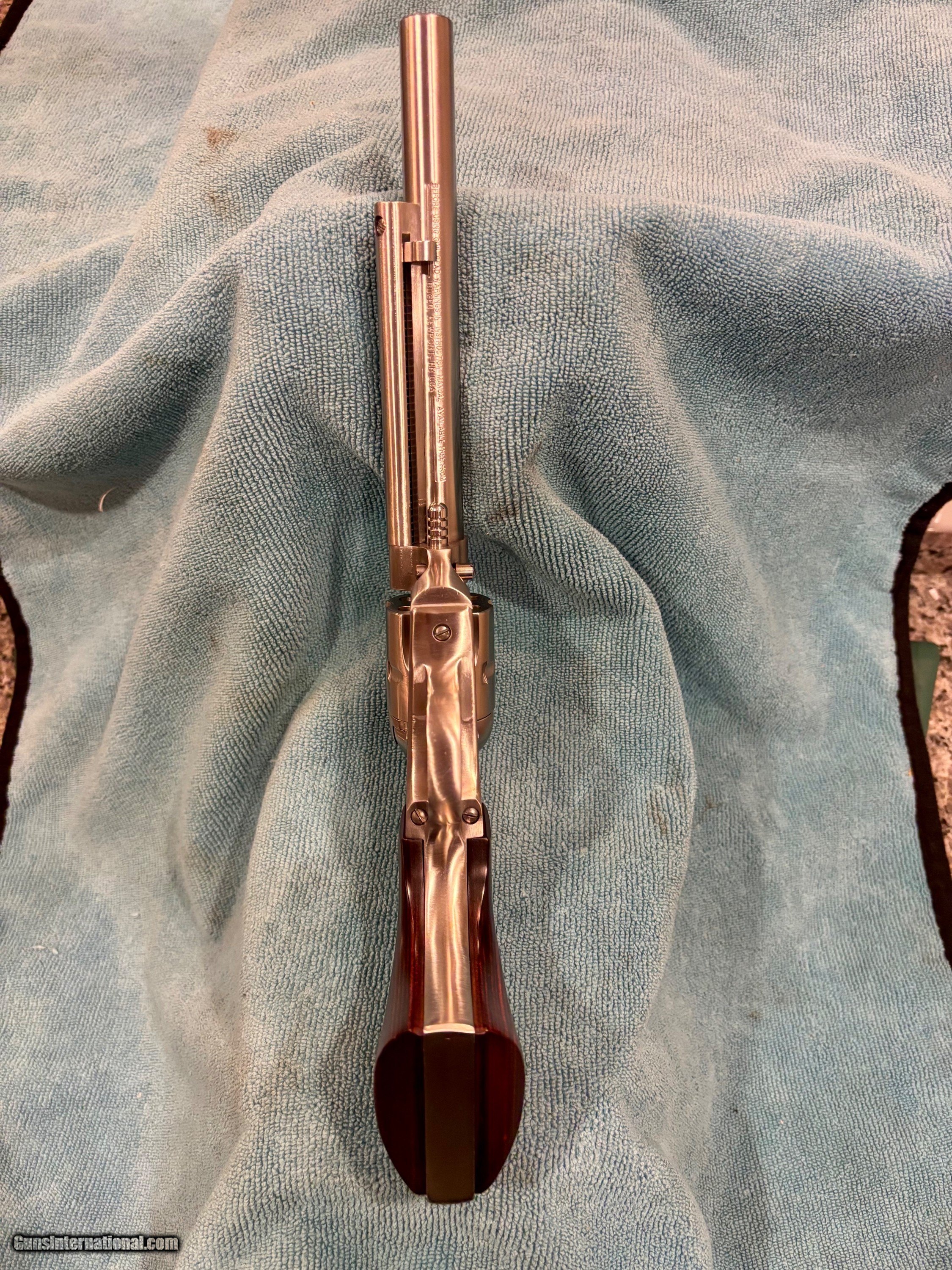 Description: Ruger new model single six caliber is 22LR ,22 magnum, magnum cyclinder has never been fired, 60th anniversay edition Stainless with Rose wood grips origianl box and paper wook. The weapon overal condition is Excellent to as new condition. The stainless finnish an the fit and finnish of the rose wood grips is exceptional. Gold enlay of 60th anniversity on back strap. I have shot a box of fifty rounds through it. 3 day inspection period begins when arrived at dealer. Certified Check or Money oreder Handgun Caliber: .22 Long Rifle Manufacturer: Ruger Model: Single Six Serial Number: 265-25528 Barrel Length: 6 1/2 Chambers: 6 Ejectors: one Condition: Excellent to as New Metal Condition: Excellent to as new Wood Condition: Excellent to as new Bore Condition: Excellent to as new Finish: Stainless Engraving: Gold 6oth anniversary emblem on back syrap Case: Original box Item Location: Virgina Grips: Rose wood Price: $600.00 Buy Now Contact Seller |