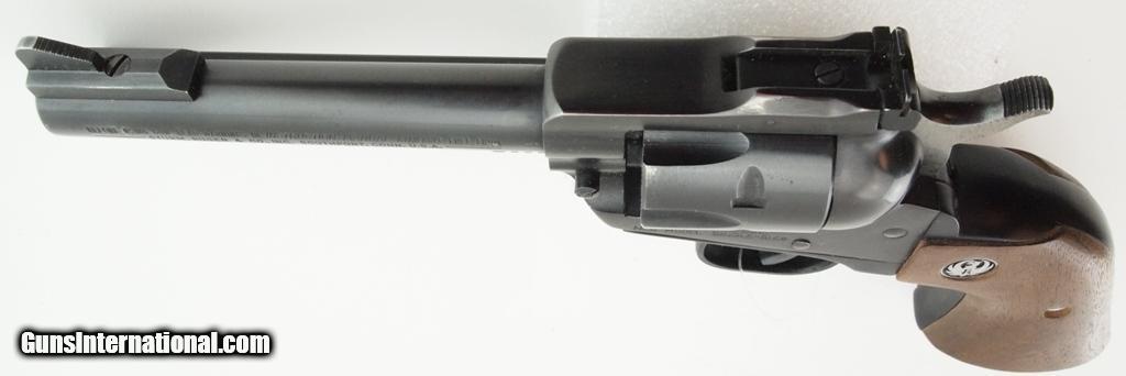 Description: Ruger New Model Single Six, .22 LR, 4 5/8" bbl, shiny bore, good rifling, adjustable notch rear sight, ramp front sight, Ruger wood grips with medallions. This pistol is in very good condition with light handling marks and holster wear. Add 3% for Credit Card Shipping $25.00 SOLD |