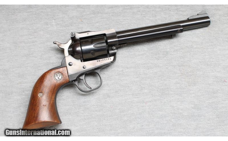 Description: Excellent condition, light wear and handling marks. .22 Caliber single action rimfire revolver, 6 1/2" barrel, blued metal, adjustable sights, crisp single acion trigger, 6 shot fluted cylinder and Ruger factory wood grips. An excellent choice for target practice or plinking fun. .22 Long Rifle SOLD Chambers: Revolver Metal Condition: Excellent Bore Condition: Bright Barrels: 6 1/2 Triggers: Single action Butt Pad: Wood grips Sights: "Adjustable rear, ramp front sights Item Location: La Vista, NE |