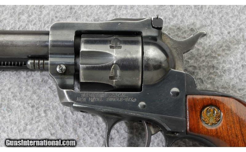 Description: The rugged reliability and safe carrying characteristics of the Ruger® Single-Six® Single-Action Revolver make it a superb sidearm to take along on most outdoor adventures, including backpacking, fishing, and small hunting. The Single-Six is also a fun gun for plinking. Ruger's patented Transfer Bar mechanism provides a block between the hammer and firing pin until the hammer is fully cocked all the way to the rear and the trigger is pulled. With the hammer down over a loaded chamber, the Single-Six can be dropped directly on the hammer with no chance of the revolver firing – an important feature for a sidearm carried in rough country. The Ruger Single-Six has been one of the quintessential firearms for the outdoors for over a half a century. Made in USA 1977. .22 Long Rifle SOLD Metal Condition: "Good, with finish added Wood Condition: Very good Barrels: 4 5/8 inch barrel Triggers: Single action Butt Pad: "Fair, worn finish and scratches Weight: 32 oz. Sights: Adjustable rear sight with blade front Item Location: Lehi, UT |