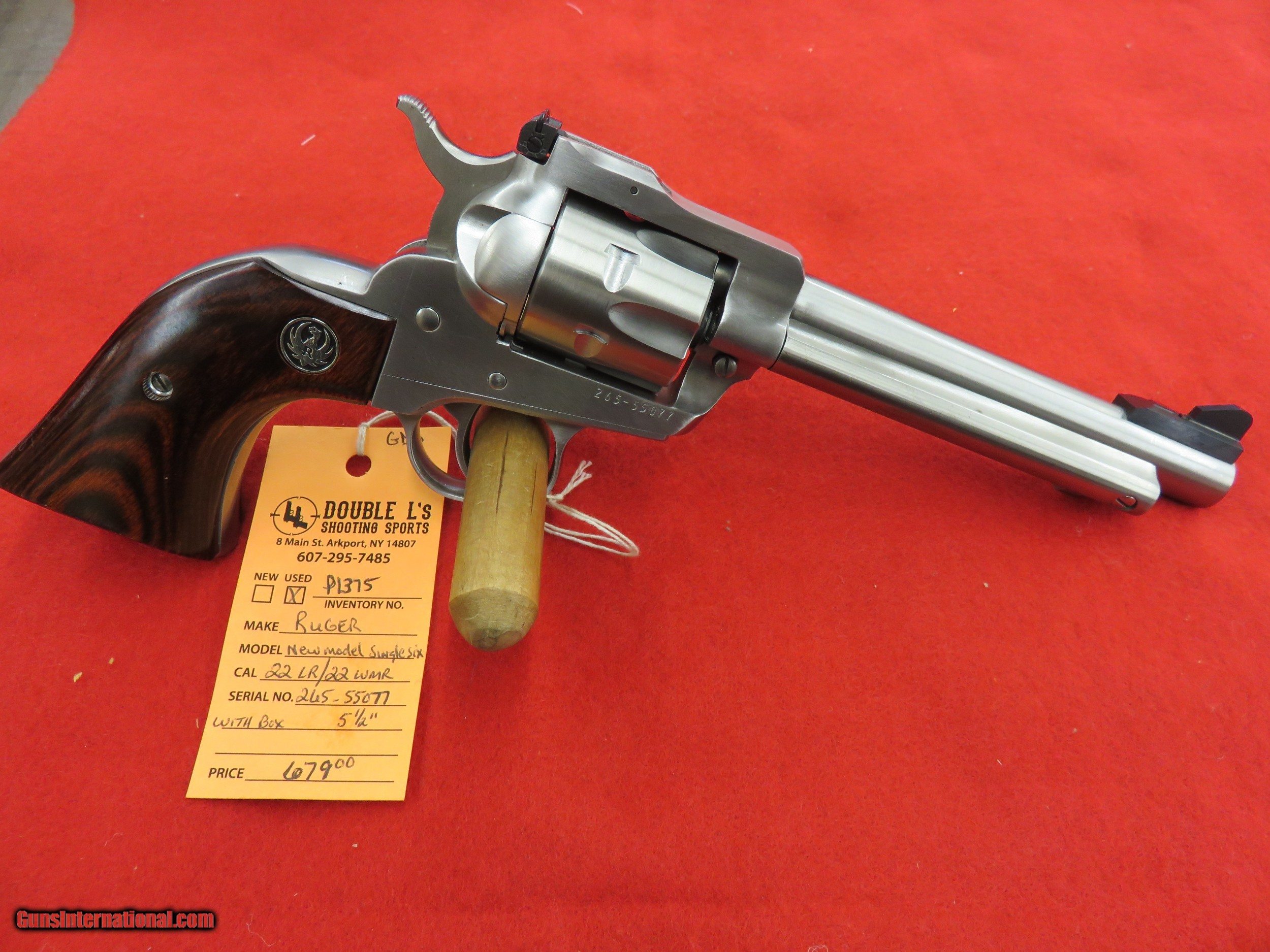 Description: Ruger New Model Single Six, 22LR/22WMR, 5 1/2" Barrel, with box, both cylinders, appears to have been fired very little, overall condition 99% SOLD |