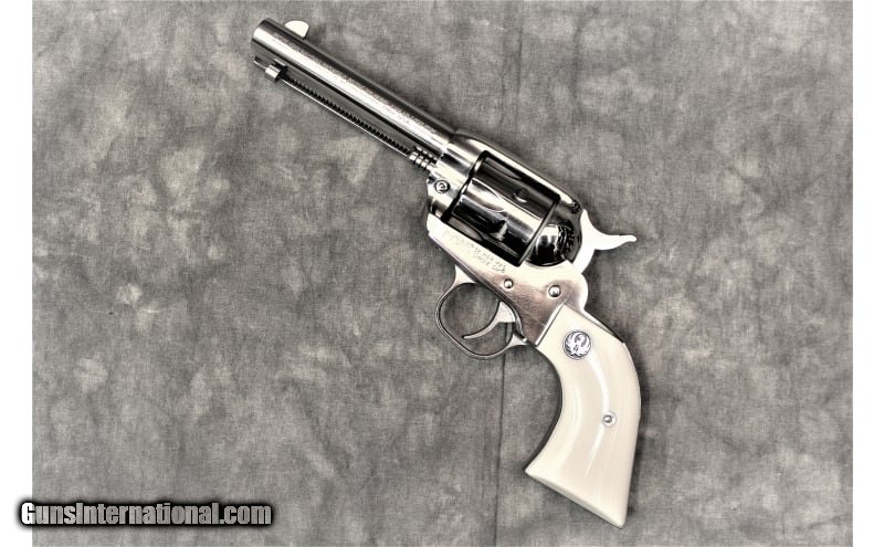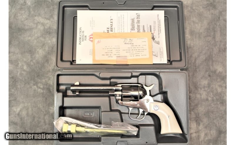 Description: This Ruger Single Six single action revolver is chambered .32 H&R Magnum. It has a patented Ruger transfer bar mechanism and loading gate interlock provide security against accidental discharge. This revolver features a bright polish stainless steel frame with synthetic ivory grips, a 6-shot fluted cylinder, and 4.75" barrel with fixed sights. Gun is otherwise in excellent condition with a smooth action and a clean bore. Comes in factory box. .32 H&R Magnum SOLD Metal Condition: Excellent Bore Condition: Excellent Barrels: 4.5 Weight: 4.5 lbs Sights: "Blade front, fixed rear. Item Location: Las Vegas, NV |