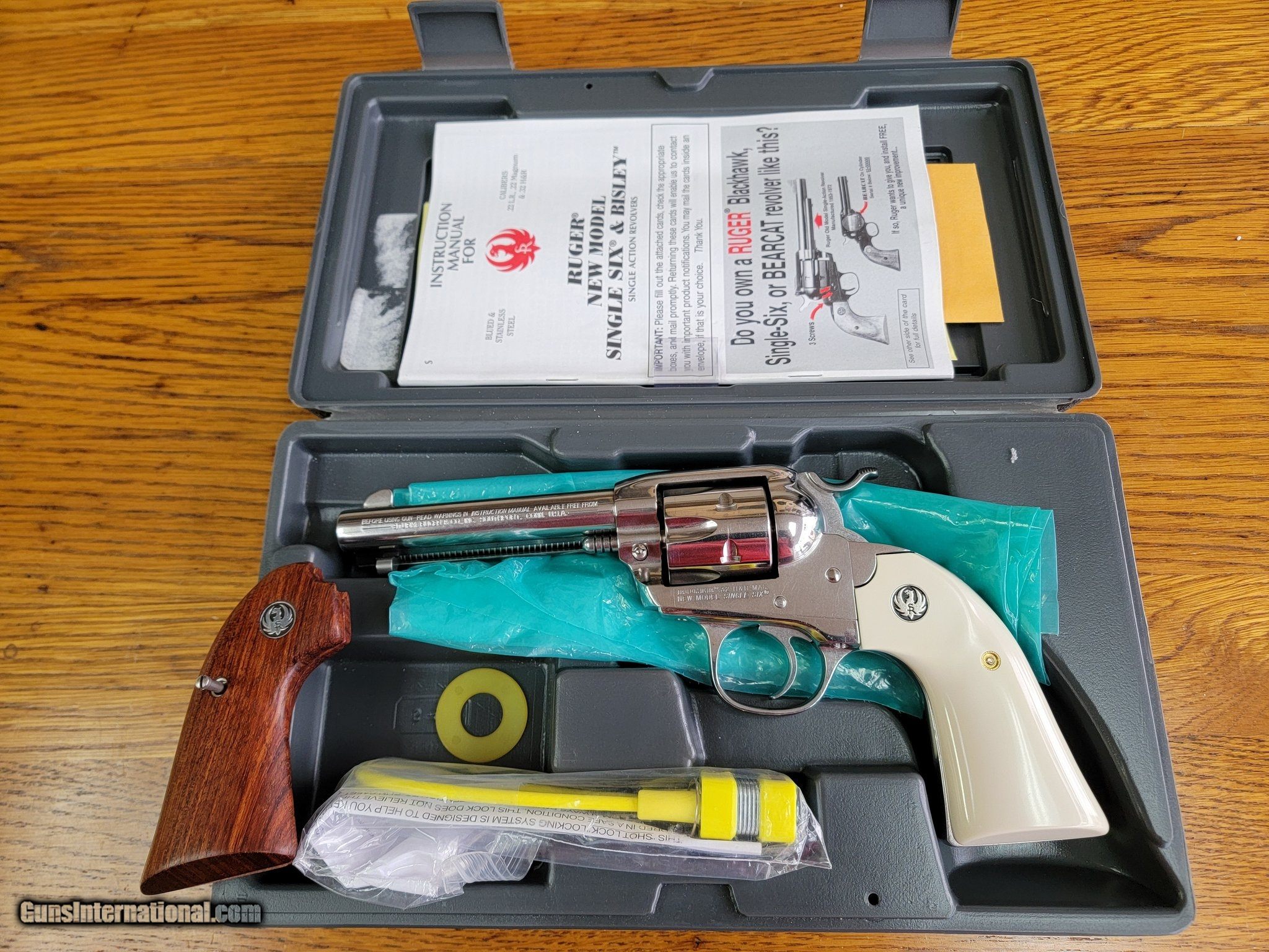Description: Guns Listing ID: 479083 Very rare New Model Single Six Bisley! Appears to be unfired. Like new in original box with an extra set of wood grips. SOLD Manufacturer: RUGER Model: NEW MODEL SINGLE SIX BISLEY Condition: Used - Non-Certified Barrels: 4.5 Gauge Info: .32 H&R MAG Finish: polished stainless |