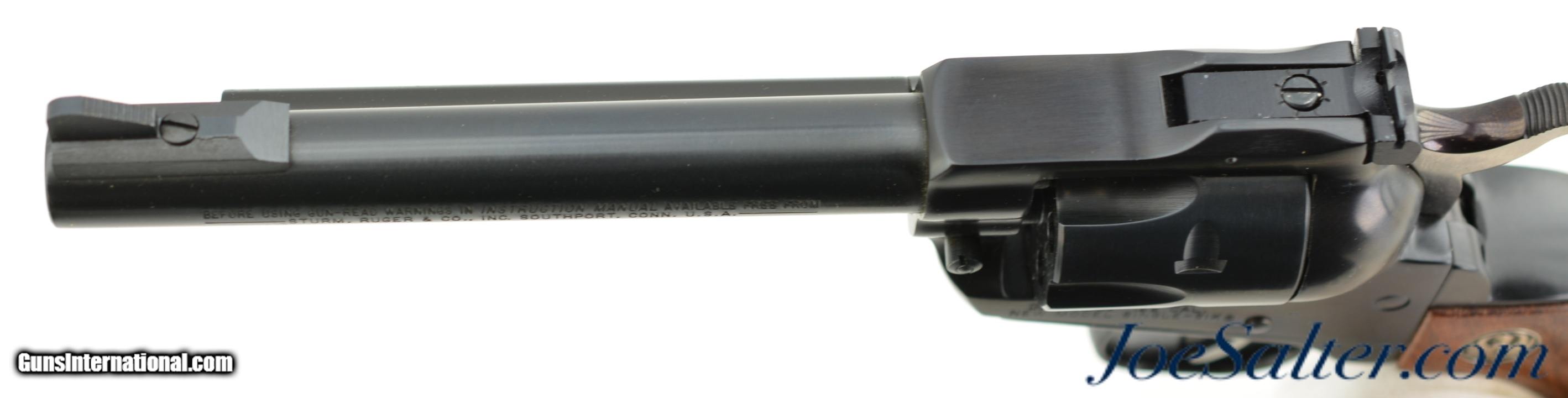 Description: Serial #263-92527, .22 LR / .22 Magnum, 5.5 inch barrel with a bright, excellent bore. This is the Ruger New Model Single Six Convertible revolver manufactured in 2000. In excellent, like new condition it retains virtually all, 99% plus original blue finish with only a faint hint of a turn line on the cylinders, both correctly numbered to the gun. It comes in the original hard plastic Ruger case also numbered to the gun with manual and lock. FFL SOLD |