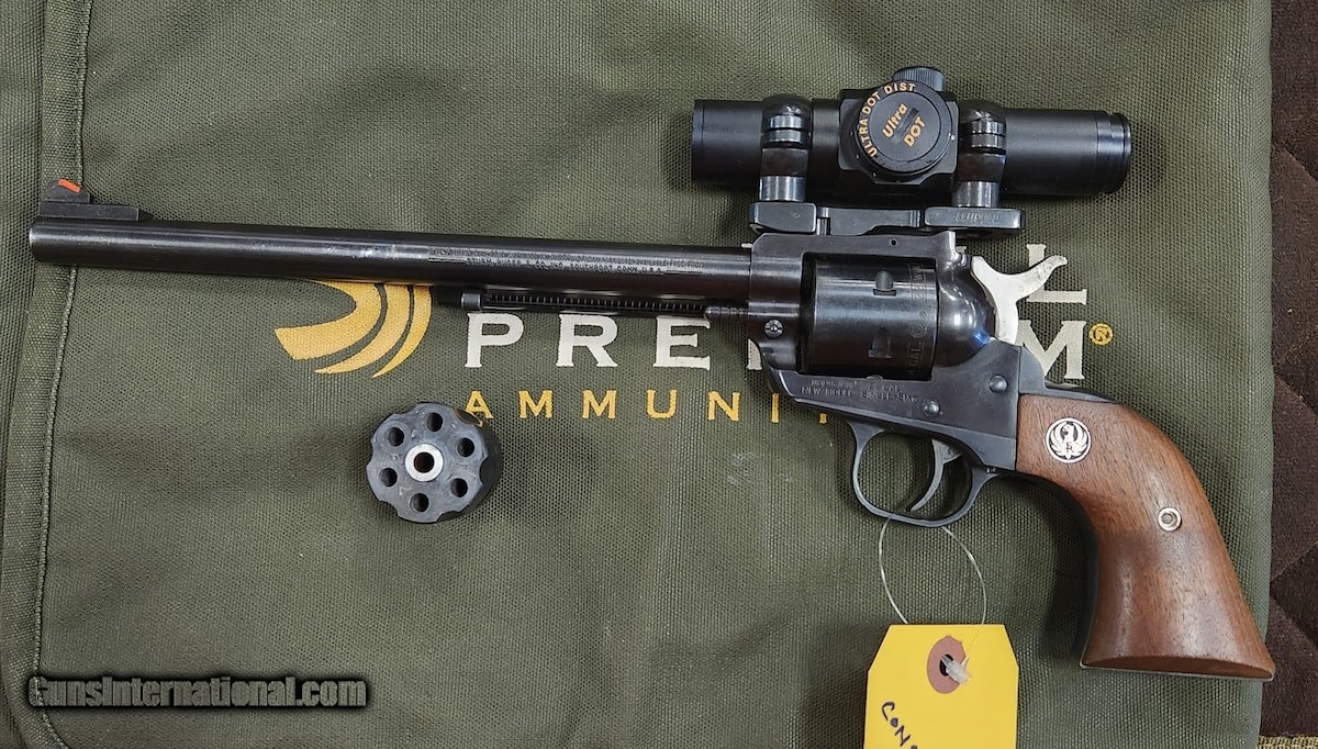 Description: Guns Listing ID: 639932 Ruger New Model Single-Six with both .22 LR and .22 WMR cylinders. In good shape, but has some wear and scratches in bluing(see pictures). Leupold mount. Ultra dot sight. Not sure if sight works. May just need new battery. Comes with Hunter leather holster. SOLD Manufacturer: RUGER Model: NEW MODEL SINGLE-SIX CONVERTIBLE Caliber Info: .22LR/.22WMR Condition: Used - Non-Certified Barrels: 9.5 BARREL Finish: BLUED |