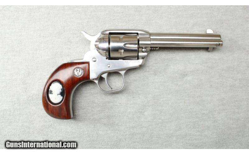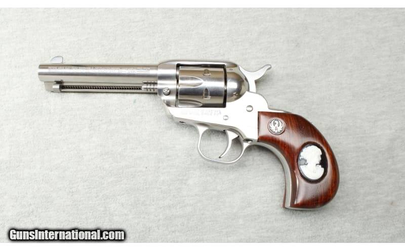 Description: Ruger New Model Single-Six chambered in .32 H&R Mag. This 6 round stainless-steel revolver featuring a 4 5/8 Inch barrel and an Avon Cameo Brooch inlaid into hardwood grips. In production for more than half a century the Ruger Single-Six is a proven reliable single-action rimfire revolver. The cold hammer-forged barrel is durable and easily cleaned. Made in 2007. Includes original box. .32 H&R Magnum SOLD Metal Condition: Excellent Wood Condition: Excellent Bore Condition: Bright Barrels: 4 5/8 Inches Triggers: Factory Weight: 2 lbs Sights: Fixed Item Location: La Vista, NE |