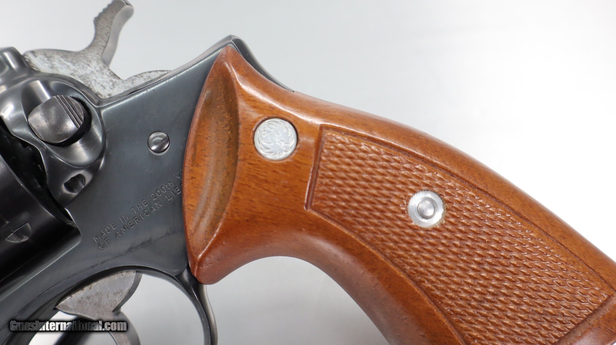 Description: Guns Listing ID: 1109068 Condition: Good Overall, Shiny Bore with Strong Rifling. The Blueing Has Rust & Pitting. Wooden Grips are In Excellent Condition. Finish Loss on The Front of The Barrel and Other Locations. Included: Red Ruger Security Six Box The Ruger Police Service-Six \"200th Year of American Liberty\" is a special commemorative edition of the popular Police Service-Six revolver, manufactured by Sturm, Ruger & Co. This edition was produced in 1976 to celebrate the United States Bicentennial. SOLD Manufacturer: RUGER Model: Police Service Six 200th Year of American Liberty Edition Caliber Info: .38 SPL Condition: Used - Non-Certified Barrels: 4 BARREL Finish: BLUED |