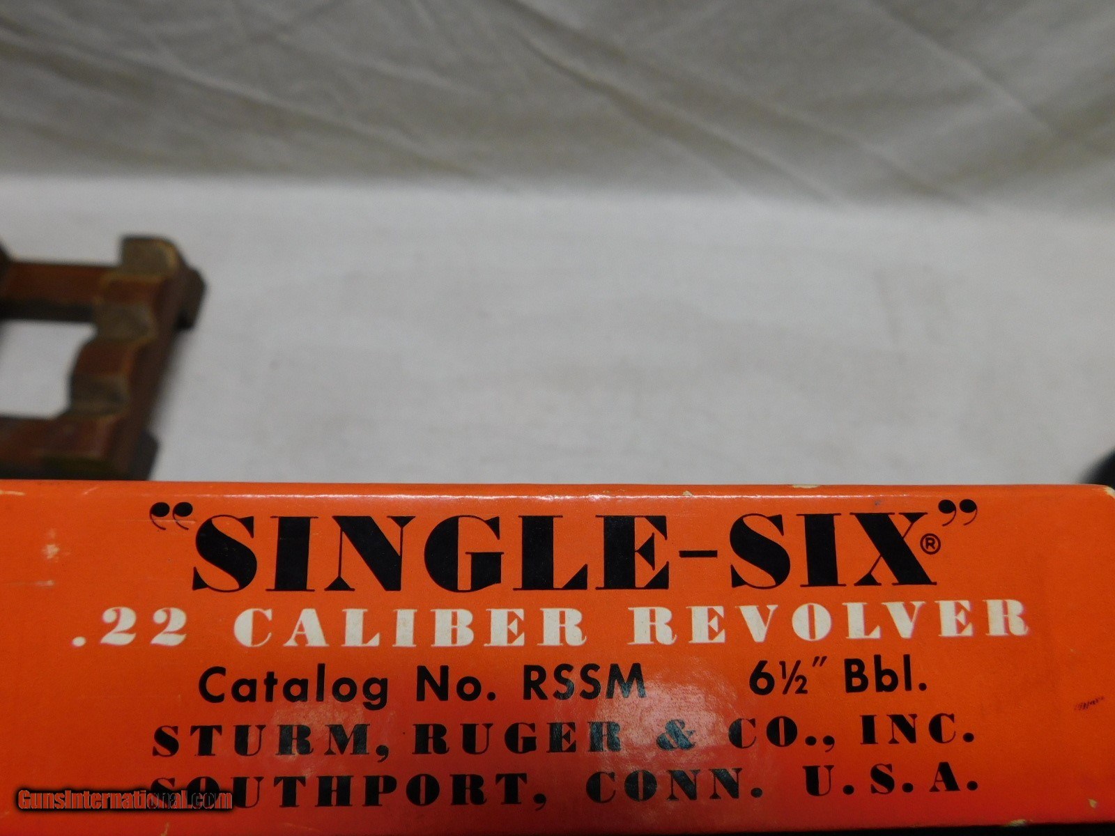 Description: Ruger RSSM Old Model Single -Six,22 Magnum,6-1\2" Barrel. Magnum Model Produced 1959-62,Original Unconverted Action,96% Bluing, Excellent Grips,There is Some Battering on Rear of Cylinder but Function is Fine!,See Picture ,With Non Matching Ruger RSSM Box. No Papers!! Store hours Thurs-Fri-10AM-8PM Sat-9AM-12PM All Other times please leave a message,Thank You! No California Sales Lower 48 State Sales only Pa. Residents 6% Sales Tax applicable Shipping $ 35.00 SOLD Manufacturer: Ruger Model: Single -Six Serial Number: 315178 Barrel Length: 6-1\2 Caliber Info: 22 Magnum |