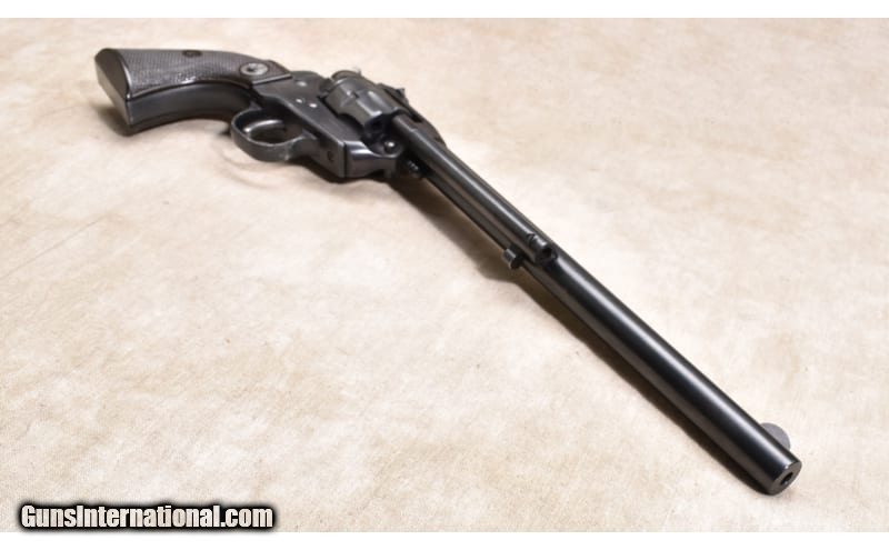 Description: This Single Six was manufactured in 1961, and is unconverted to the transfer bar system. It features the long 9-1/2 inch barrel, and special order black rubber grips. .22 Long Rifle SOLD Chambers: 6 rounds Metal Condition: Excellent. Wood Condition: Excellent. Bore Condition: Shiny and bright with good rifling. Barrels: 9-1/2 inches Triggers: Factory single action trigger. Butt Pad: Checkered black hard rubber. Weight: 39 oz Sights: Fixed blade and notch. Item Location: Rogers |