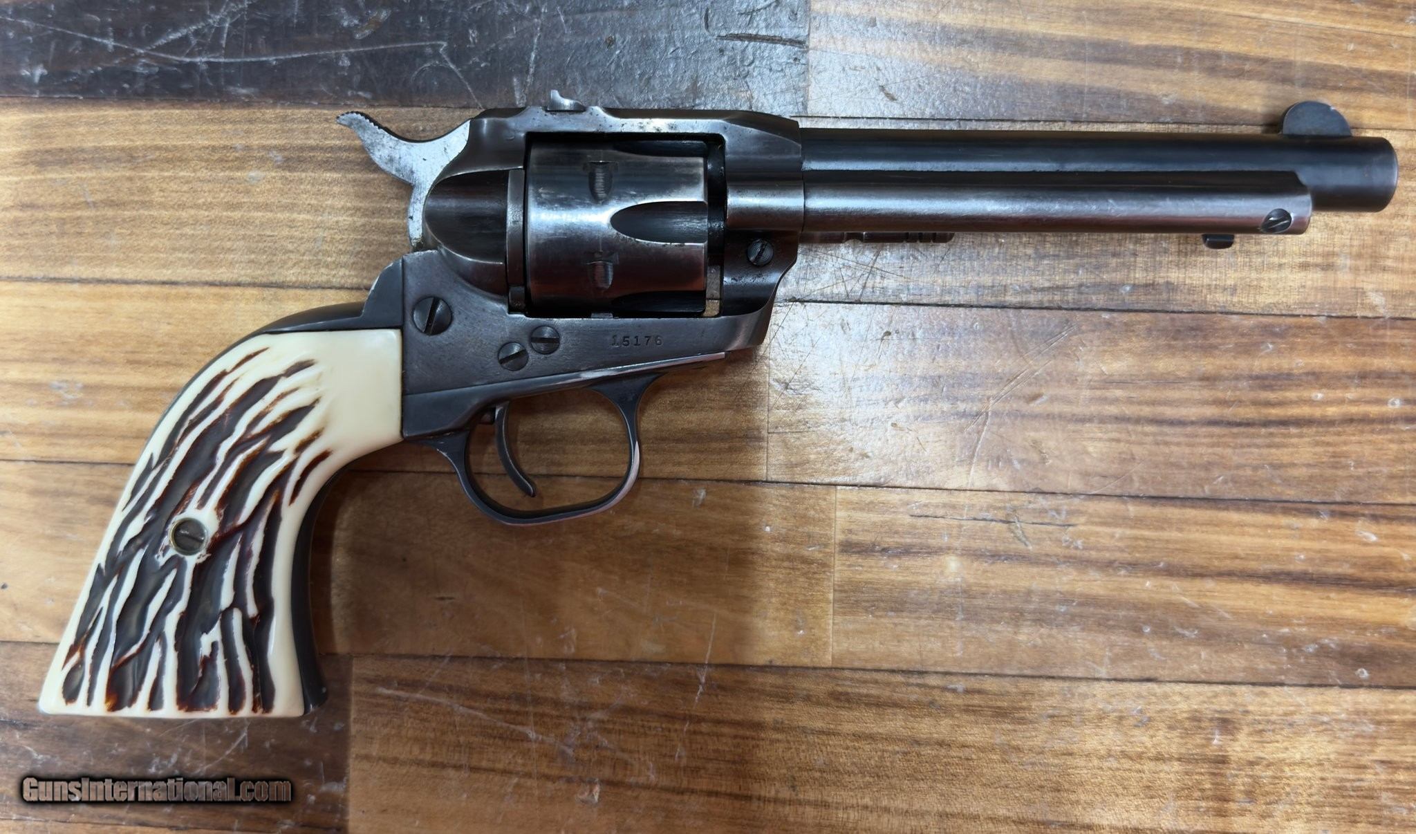 Description: Guns Listing ID: 588516 Classic Ruger Single-Six in original blued finish. Left side stamped “RUGER .22 CAL. SINGLE-SIX" and barrel marked “STURM, RUGER & CO. SOUTHPORT, CONN. U.S.A." Serial visible: 15176. Revolver is single-action only (hammer must be cocked for each shot). Manufacturer: Sturm, Ruger & Co. • Model: Single-Six (single-action) • Caliber: .22 Long Rifle (marked) • Capacity: 6 rounds • Barrel length: 5.5" • Finish: blued steel (worn in places) Manufacturer: RUGER Model: Single Six Caliber Info: .22 CAL Condition: Used - Non-Certified Barrels: 5.5" BARREL Action: REVOLVER Finish: parkerised Price: $499.99 Contact Seller |