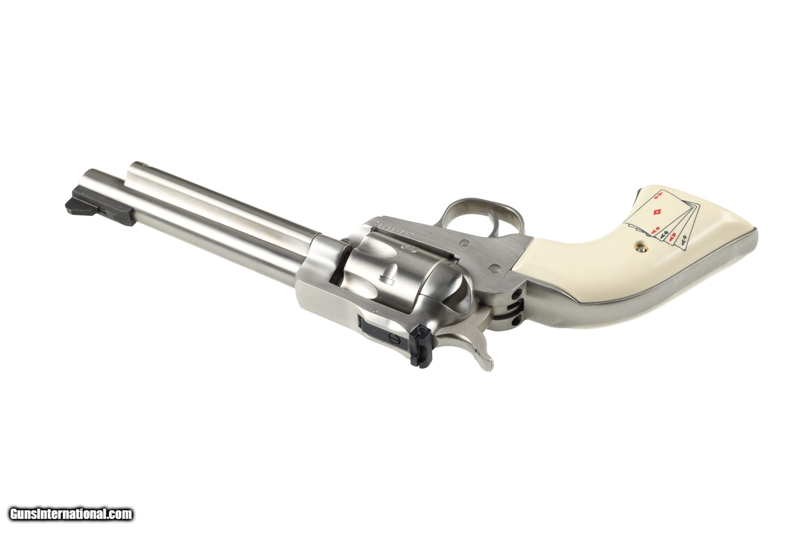 Description: This New model Single Six is in very good overall condition, with only light wear and comes equipped with a custom set of "Aces" Grips and a .22 Mag cylinder. Manufactured in: USA Hand: Right Hand Action Finish: Stainless Steel Metal Finish: Original Barrel Length: 5.5 Inches Barrel Condition: Very Good Stock Finish: Original Stock Condition: Very Good Grip: Pistol SOLD Manufacturer: Ruger Model: Single Six Caliber Info: .22 LR / .22 Mag Condition: Preowned Metal Condition: Very Good Action: Revolver Triggers: Single Finish: Original Weight: 2.6 lbs Case: NONE |