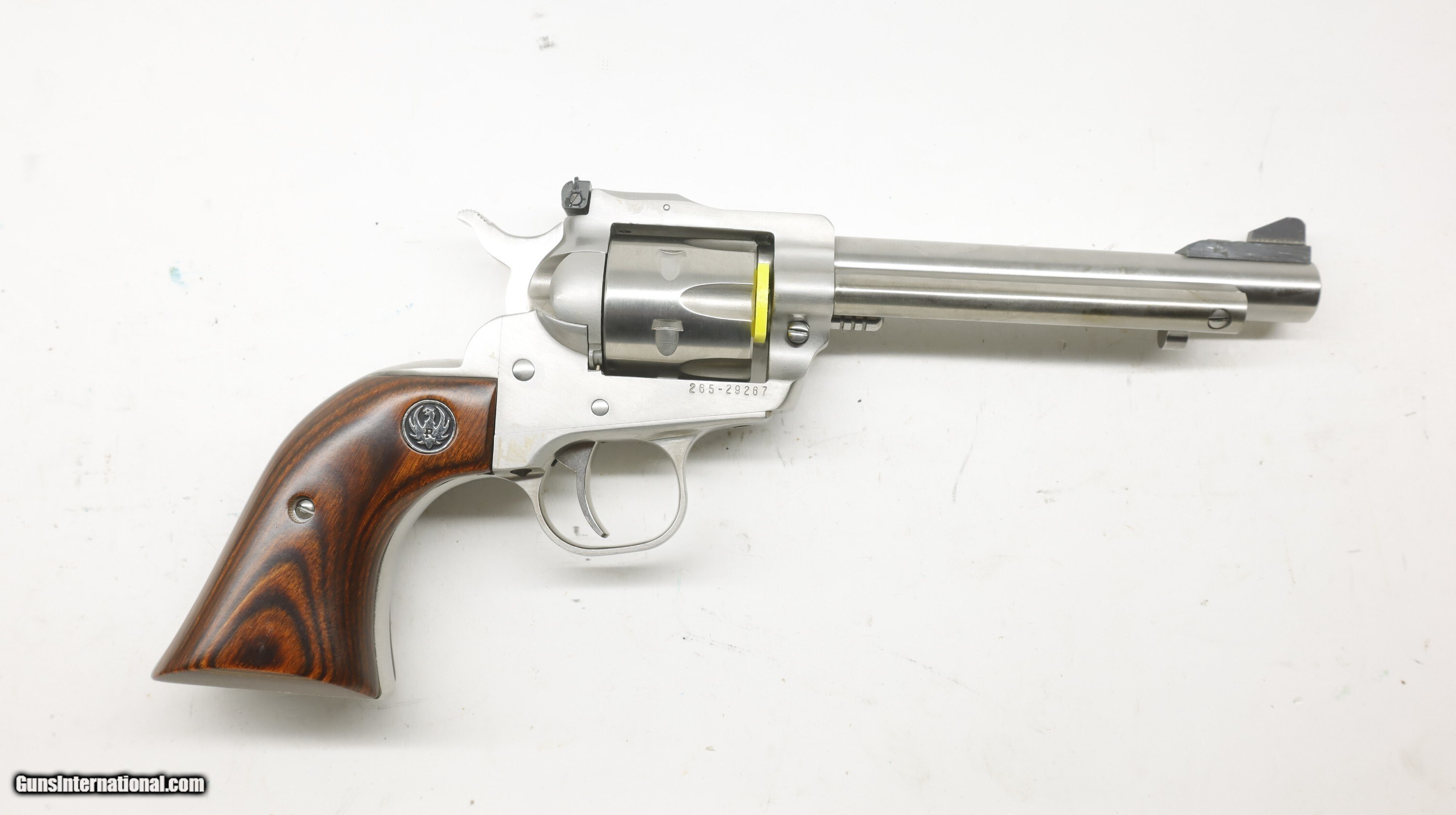 Description: Ruger Single Six 22 LR and Mag Convertible NOS 00668, made in 2010. Comes in factory hard case. We will trade for silver and gold coins and bars. We are an 07 dealer and deal in machine guns! Used guns might need a good cleaning to bring the gun up to your standards. We buy and trade for guns. All my guns (except layaway) come with a non-firing, 3 day unconditional return privilege, from the day UPS delivers to your dealer. Buyer pays shipping both ways if the gun comes back. Please make sure to make it to your FFL to inspect within the 3 days. We can hold until you know you can make to your dealer in your 3 day window. We accept personal check or any certified funds. We can also take your credit card, +3%. Email me if you would like these pictures sent to you, they will come through bigger and better than on the listing page here. We do offer Layaway. Our standard terms are 25% down, 90 days. Initial deposit is not refundable. Layaway guns do not have a return/inspection period. Email me with any questions. Please check your local laws to confirm it is legal to own in your state! Buyer pays $30 shipping and insurance to your FFL in the lower 48. AK, HI or PR is extra. I will ship to California, as long as it is legal, NO PROBLEM! I am a licensed FFL, and will include a copy of my FFL with the gun for your dealer’s records. I will ship to a C&R if the gun is eligible. I will ship to California, but you need to confirm the gun is legal where you are, California or other. WE BUY AND CONSIGN GUNS AND GUN COLLECTIONS! Will travel! We can do your machine guns! I am always looking for good clean, old original Winchesters to buy, consign, or trade, especially Pre '64's model 70's and model 54's. WE ALSO TRADE FOR CLASSIC CARS AND TRUCKS! We also trade for gold and silver. SOLD Handgun Caliber: .22 Long Rifle, .22 WMR (.22 Magnum) Manufacturer: Ruger Model: Single Six Barrel Length: 5.5 Condition: New Old Stock |