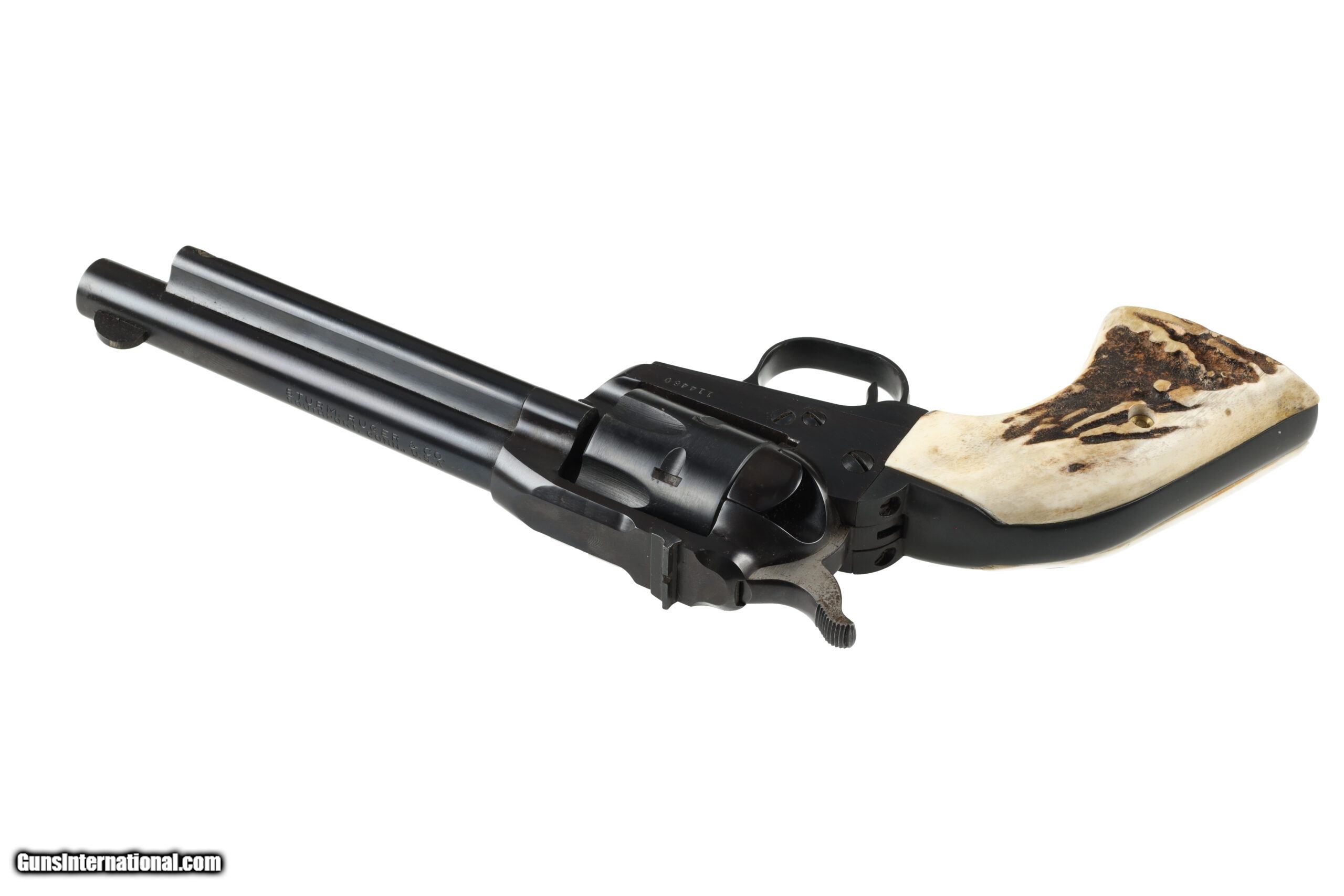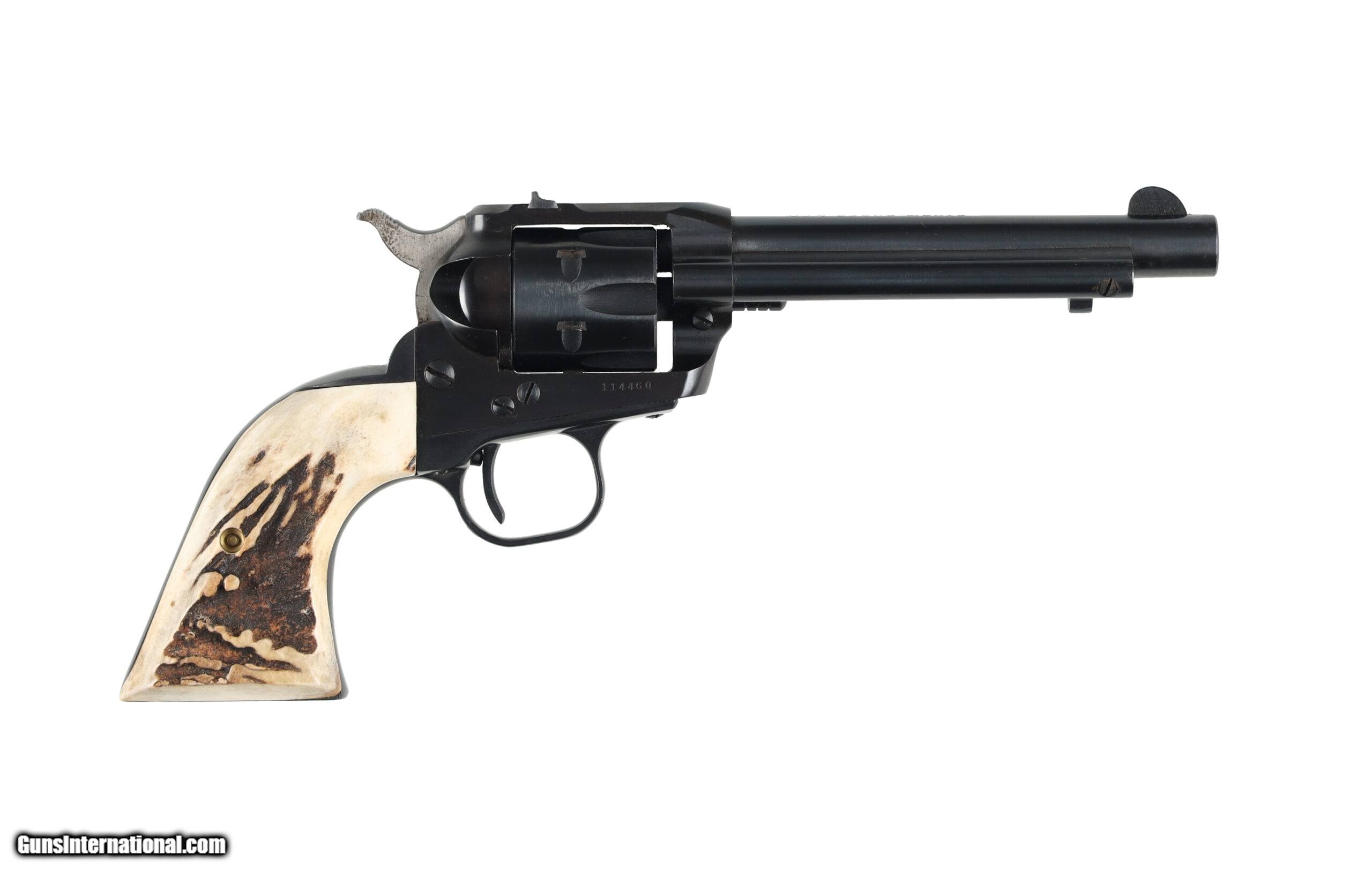 Description: This First Generation Ruger Single Six revolver, is in very good overall condition with only minor wear. This pistol also comes equipped with a set of custom stag grips and a leather holster with belt. Manufactured in: USA Hand: Right Hand Action Finish: Blue Action Description: Revolver Metal Finish: Original Barrel Length: 5.5 Inches Barrel Condition: Very Good Stock Finish: Original Stock Condition: Very Good Grip: Pistol SOLD Manufacturer: Ruger Model: Single Six Caliber Info: .22 Long Rifle Condition: Preowned Metal Condition: Very Good Action: Revolver Triggers: Single Finish: Original Weight: 3.2 lbs Case: Leather Scabbard |