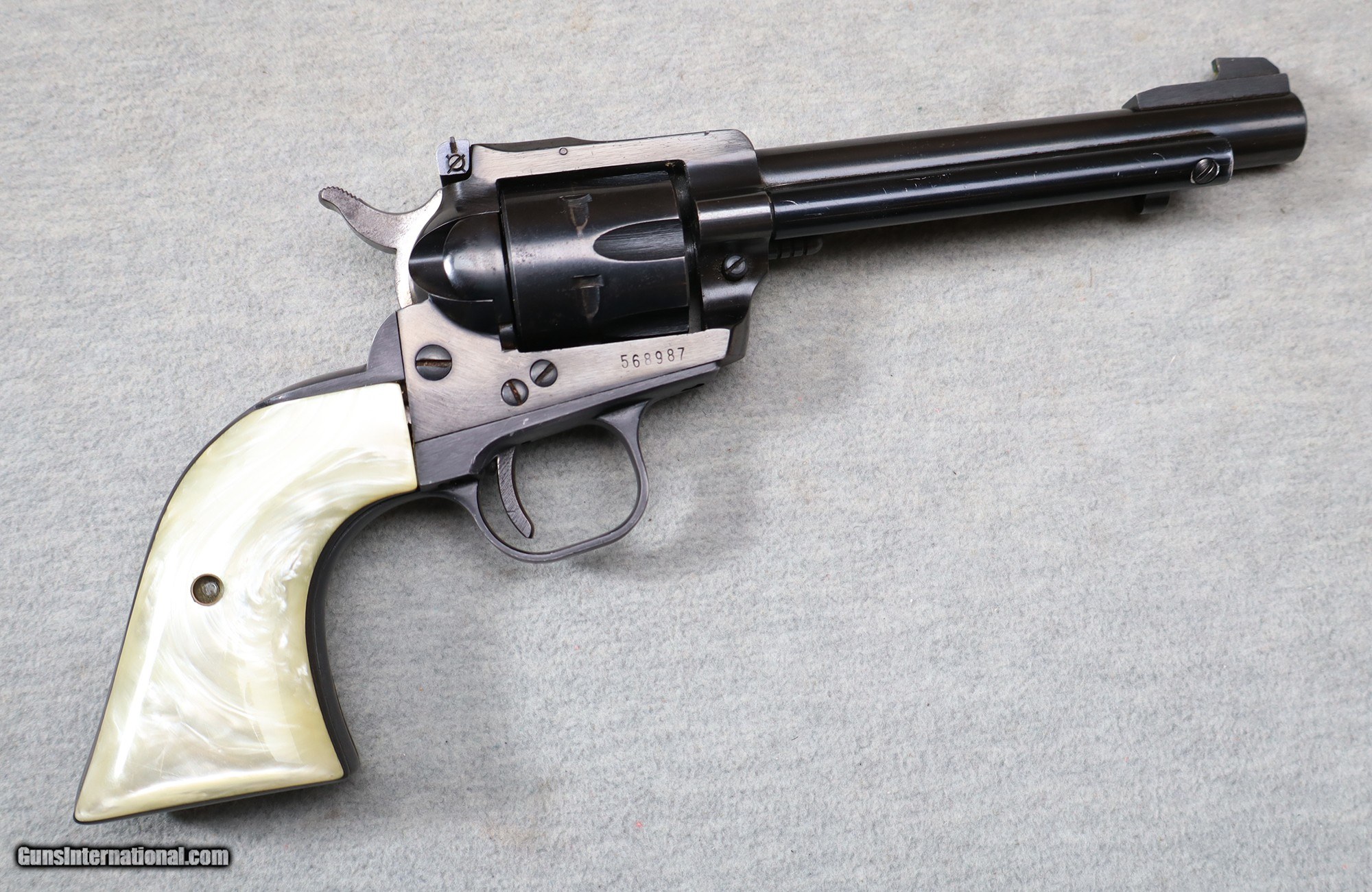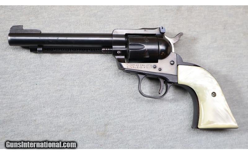 Description: The Ruger Single-Six is a single-action rimfire revolver produced by Sturm, Ruger & Co. The Single-Six was first released in June 1953. This example has a 5.5 inch barrel and a six round fluted cylinder. Faux mother of pearl grips appear on the rimfire revolver. Finish is very nice with some finish wear in expected places like on the muzzle end. .22 Long Rifle Metal Condition: good Bore Condition: bright Barrels: 5.5" barrel Triggers: SA Butt Pad: faux mother of pearl grips Weight: 2 lbs Sights: factory sights Item Location: La Vista, NE Price: $549.99 Contact Seller |