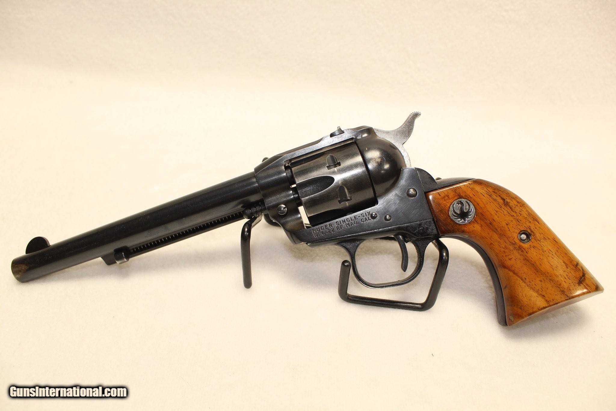 Description: Guns Listing ID: 571190 Description: Excellent example of a classic single-action rimfire. This .22 Magnum is a 3-screw model, and has a little holster wear on top of frame and near the cylinder. Manufacturer/Importer: RUGER Model: SINGLE-SIX Type: PISTOL Caliber: WIN .22 RF MAG. Action: SINGLE ACTION REV Capacity: 6 Barrel Length: 6.5" Frame Material: METAL Sights: IRON Imperfections/Customizations: BLUING WEAR ON CYL/FRAME/BARREL FROM USE AND HOLSTER WEAR Manufacturer: RUGER Model: SINGLE SIX Caliber Info: .22 WMR Condition: Used - Non-Certified Barrels: 6.5" BARREL Action: REVOLVER Finish: WOOD/BLUED Price: $599.99 Contact Seller |
