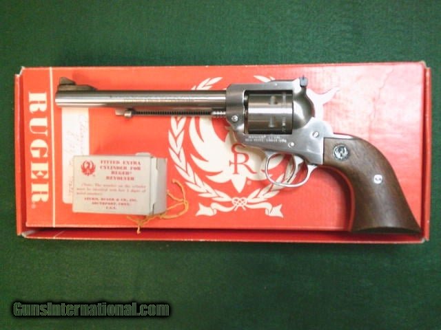 Description: Guns Listing ID: 548265 1980 Ruger New Model Single Six - Stainless finish - 6.5\" Barrel - Comes with .22 WMR Cylinder and original red box and paper work. SOLD Manufacturer: RUGER Model: SINGLE SIX Caliber Info: .22LR/.22MAG Condition: Used - Non-Certified Barrels: 6.5 BARREL Action: REVOLVER Finish: BRUSHED STAINLESS |
