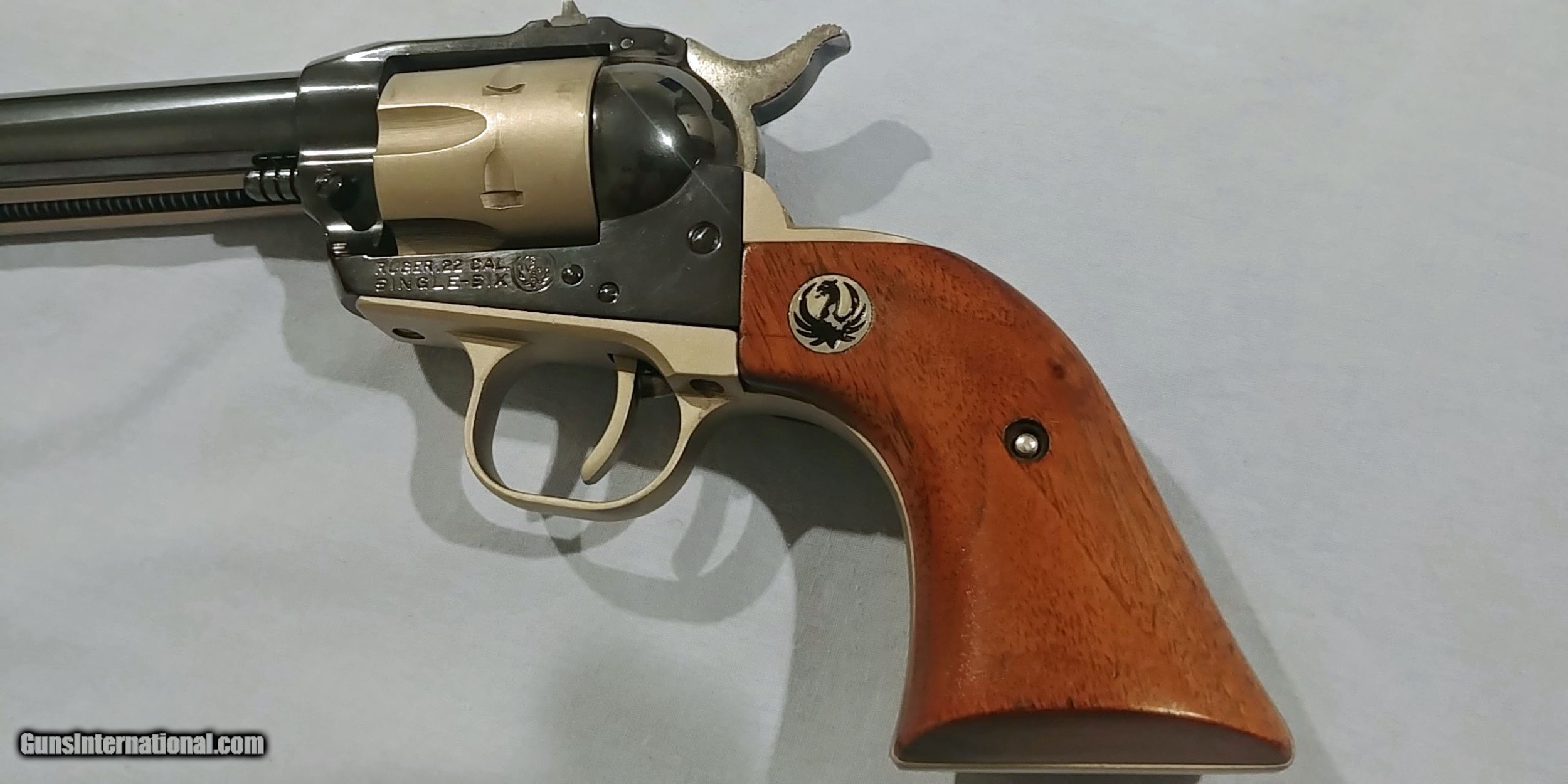 Description: This is a Ruger Single-Six .22 Revolver made in 1966. It's designated as the RSS9X which designed to accommodate both .22 Rimfire and .22 WRF cylinders. This one has the .22 rimfire cylinder. It's in excellent condition. The barrel is 9.5". When I bought it, it had a handwritten tag that said "Display for Ruger Salesman". I have no information that would confirm that was the case. I have never shot it. I'm sure it has been shot, just not by me. For me it's just been a safe queen. I did get the factory letter from Ruger. It goes with the gun. On a couple of photos there appears to be a diagonal line across the cylinder. It's a light reflection and not a line on the gun. If you need any other info or photos let me know. I do not have the box or extra cylinder. SOLD Handgun Caliber: .22 Long Rifle Manufacturer: Ruger Model: Single-Six Barrel Length: 9.5 |