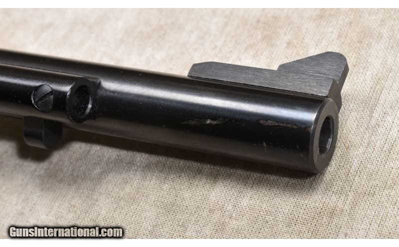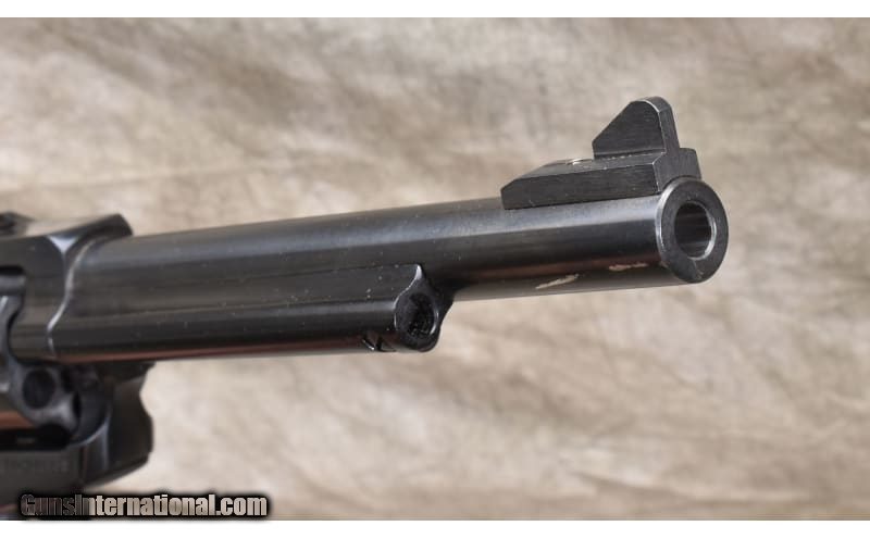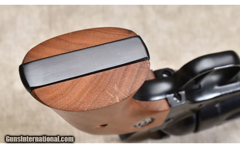Description: This Ruger New Model Single Six is in overall very good condition with one scratch on the barrel near the muzzle and a shallow scratch on the left grip. The term "New Model" simply means that this model includes Ruger's transfer bar mechanism for increased safety. Chambered .32 H&R for affordable rimfire shooting. .32 H&R Magnum SOLD Chambers: 6 Rounds. Metal Condition: Very good. Scratch near muzzle on right side. See photo. Wood Condition: Very good. Shallow scratch on bottom of left grip. See photo. Bore Condition: Shiny with good rifling. Barrels: 6.5 Inches. Triggers: Factory single action. Stock Dimensions: Overall length: 12 Inches. Butt Pad: Bisley-Style Harwood. Weight: 31 oz Sights: Adjustable rear with ramp front. Item Location: Rogers |