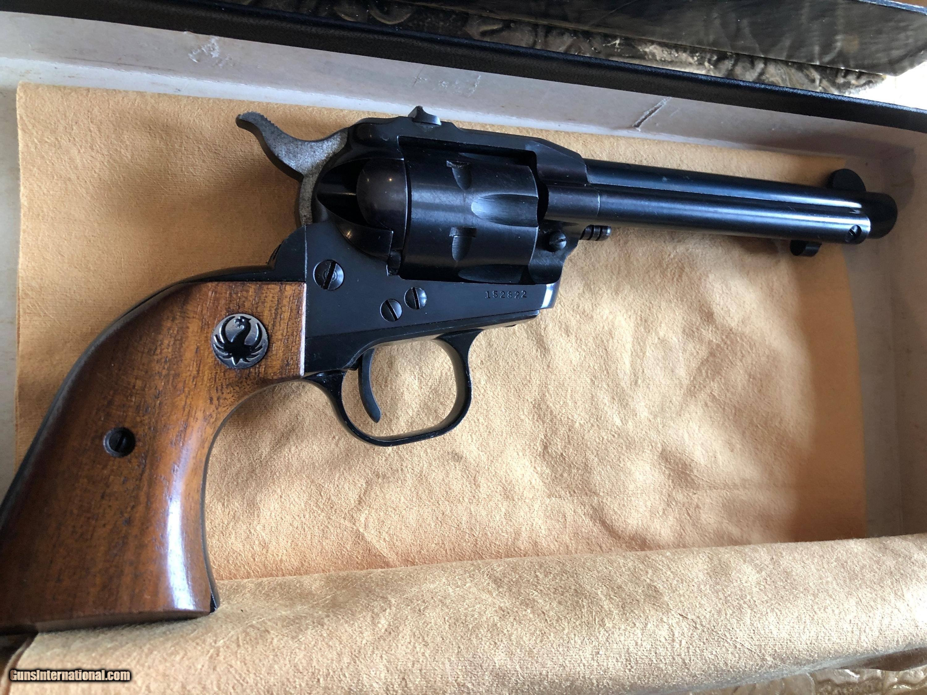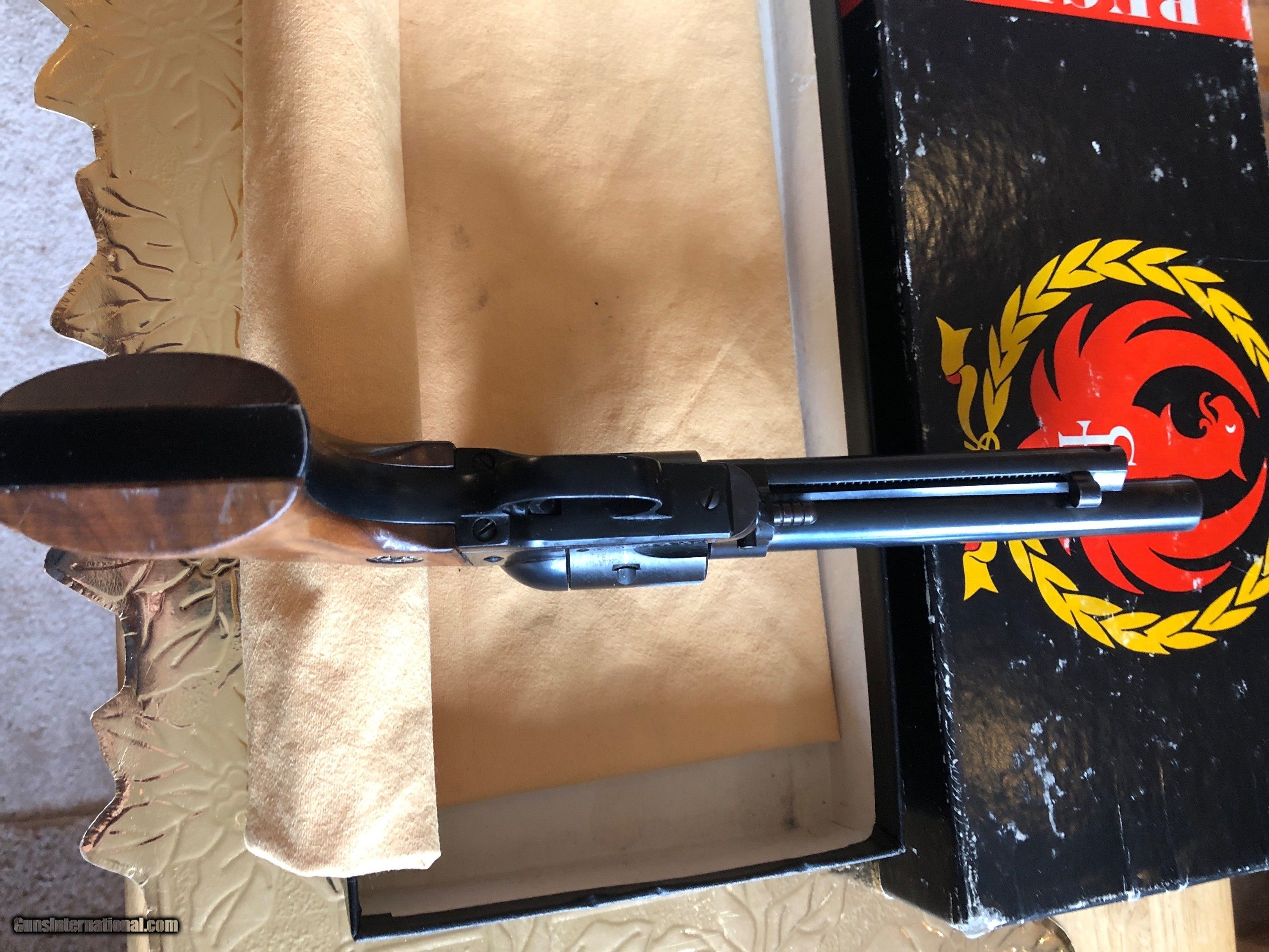 Description: SOLD BEAUTIFUL RUGER .22 SINGLE SIX REVOLVER MFR. AROUND 1960 , BLUE WITH 5 1/2" BARREL AND TWO PIECE BOX , NO TRANSFER BAR , IN EXCELLENT CONDITION FROM MY FATHERS COLLECTION , PLESE LOOKAT PICTURES AND ASK QUESTIONS . NOTE ; A $10.00 DISCOUNT ON THIS GUN IF PAYMENT IS WITH "USPS MONEY ORDER ". SOLD Handgun Caliber: .22 Long Rifle Manufacturer: RUGER Model: SINGLE SIX Serial Number: 1524XX Barrel Length: 5 1/2 Condition: EXCELLENT Metal Condition: EXCELLENT Wood Condition: EXCELLENT Bore Condition: EXCELLENT |
