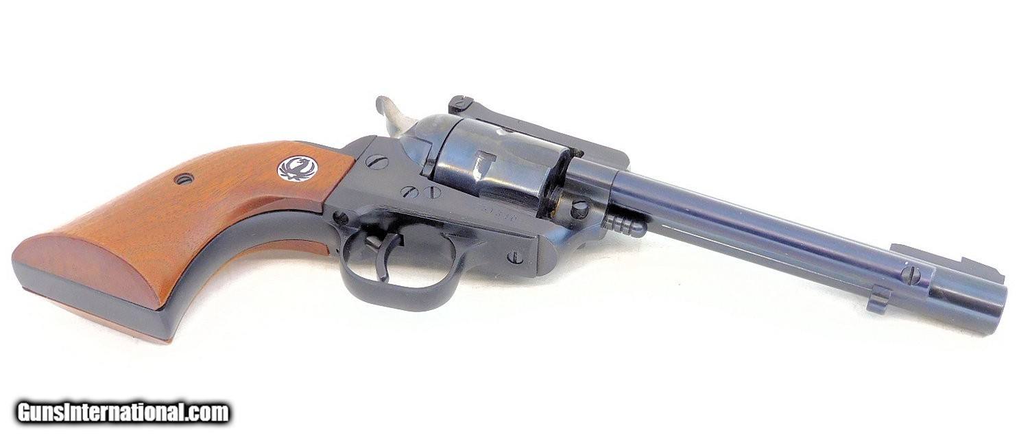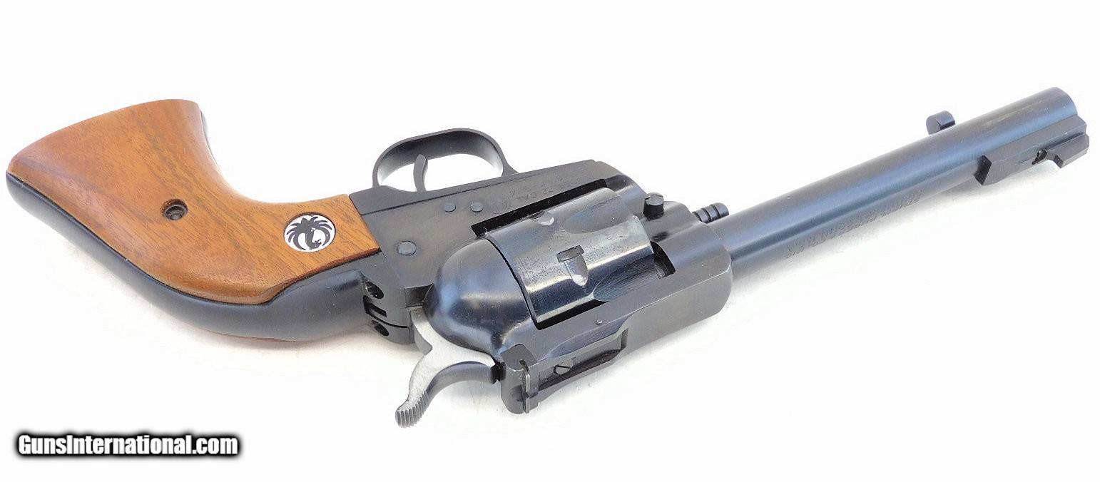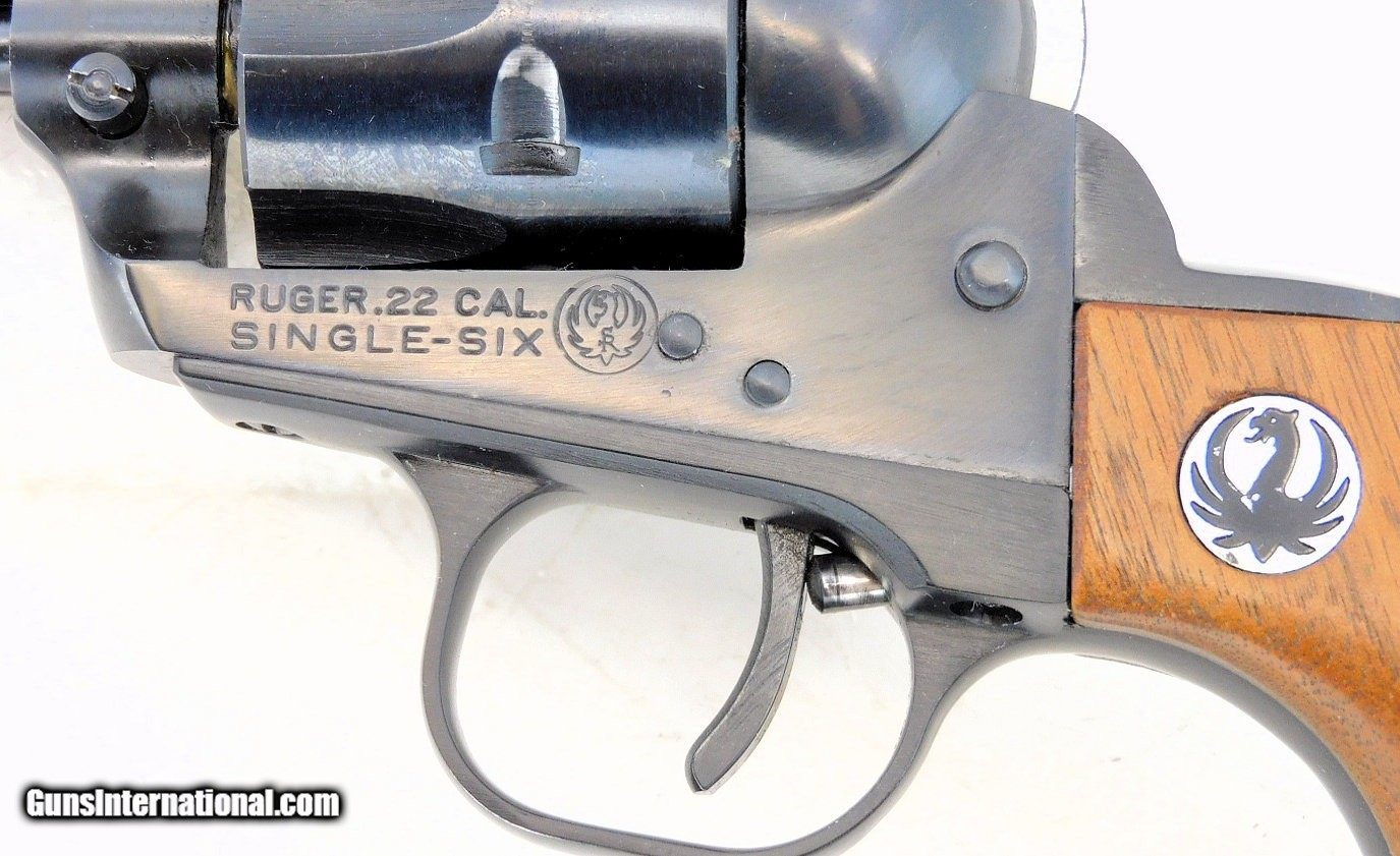 Description: Ruger Single Six Convertible 22LR / 22 Mag. 5 1/2", bright shiny smooth bore, adjustable square notch rear sight, fixed front sight, tight action, has not had Ruger safety update, includes both cylinders, and nice wood grips with Ruger medallions inset. Serial number look-up indicates this revolver is a Super Single Six revolver manufactured in 1968. This revolver is from an estate and the box has the serial number hand written in grease pencil on the side, but shows a 6 1/2" vs 5 1/2" barrel. Very clean! Great revolver for your next adventure! Add 3% for Credit Card Shipping $35.00 in the contiguous 48 United States SOLD |