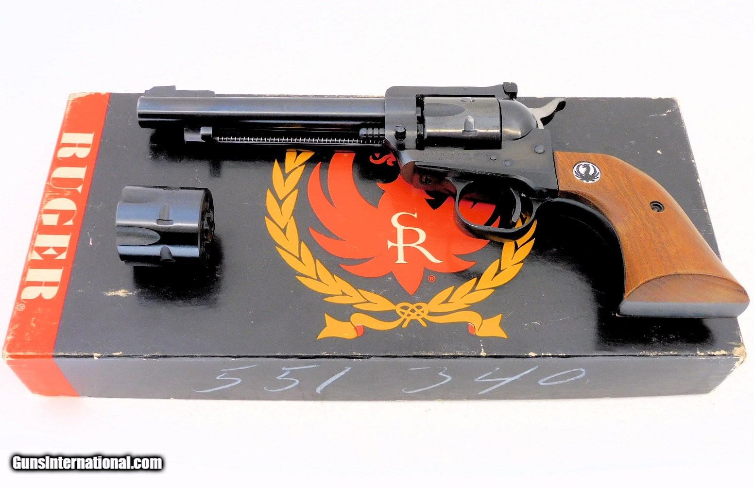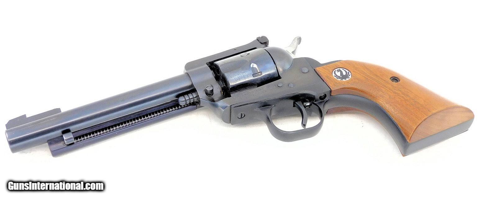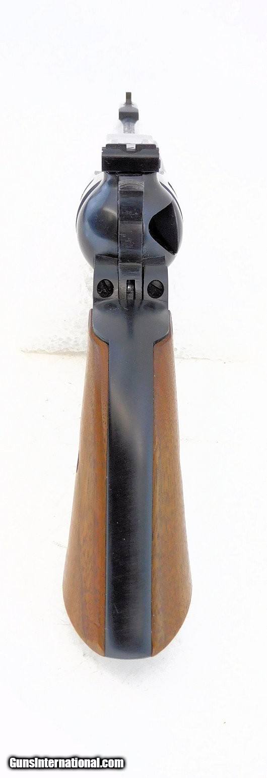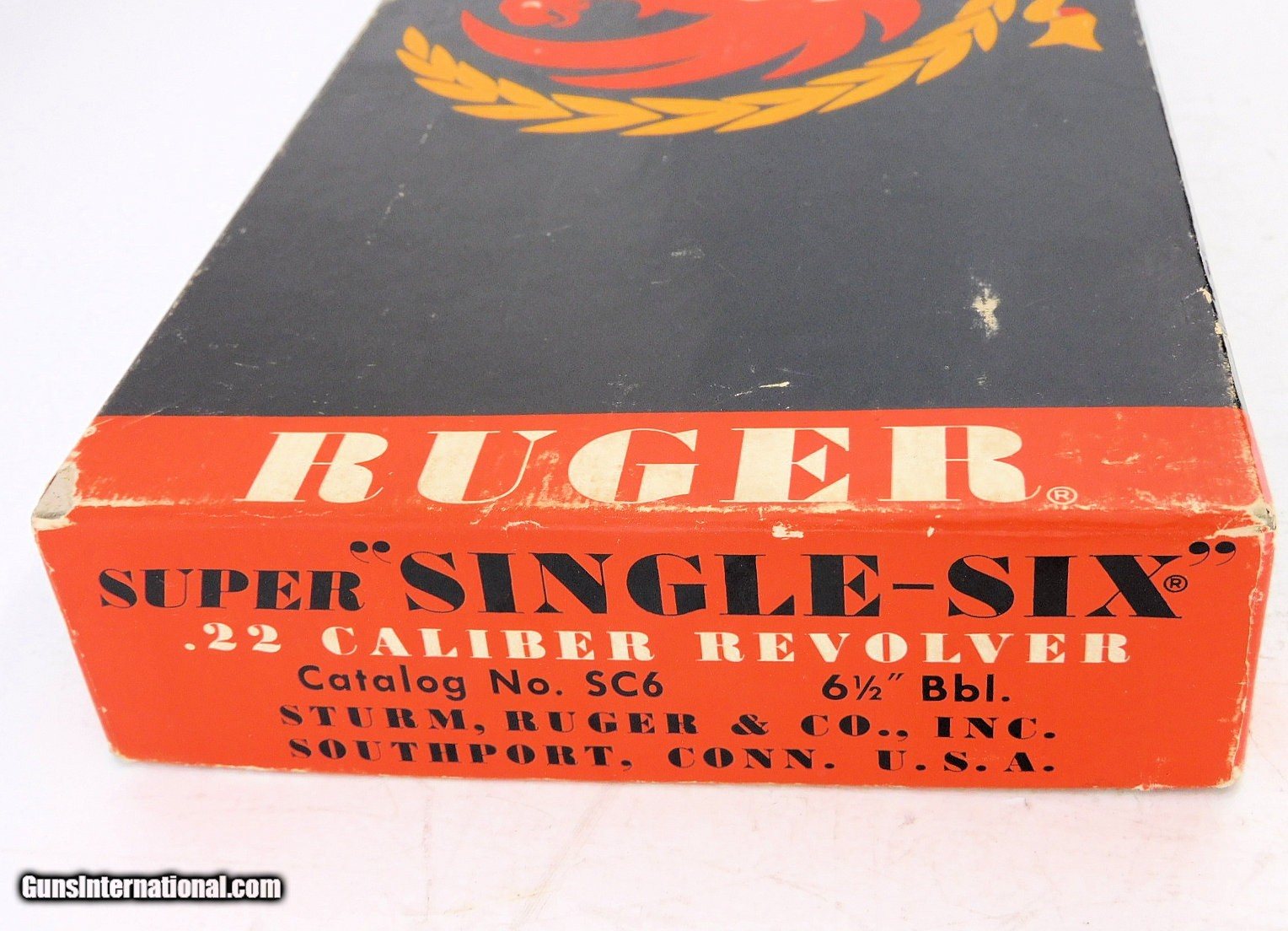 Description: Ruger Single Six Convertible 22LR / 22 Mag. 5 1/2", bright shiny smooth bore, adjustable square notch rear sight, fixed front sight, tight action, has not had Ruger safety update, includes both cylinders, and nice wood grips with Ruger medallions inset. Serial number look-up indicates this revolver is a Super Single Six revolver manufactured in 1968. This revolver is from an estate and the box has the serial number hand written in grease pencil on the side, but shows a 6 1/2" vs 5 1/2" barrel. Very clean! Great revolver for your next adventure! Add 3% for Credit Card Shipping $35.00 in the contiguous 48 United States SOLD |