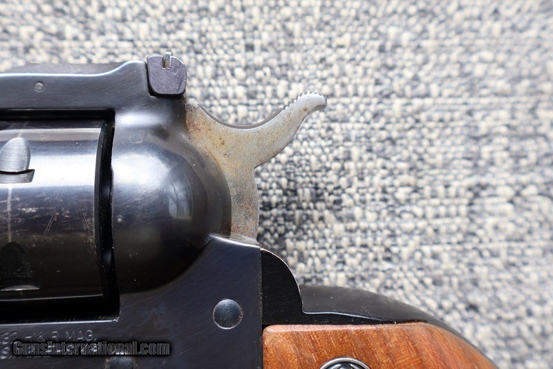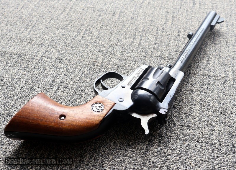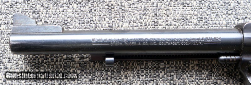 The Ruger Single Six is in excellent condition overall. This is Ruger's Model #06503 and referred to Ruger Single Six -SSM which started production in 1984 and ceasing in 2015. Based on the serial number this revolver was made in 1986. The revolver shows some cylinder drag and some edge wear on high surfaces and at the end of the muzzle. Overall, the black anodized gate has turned a blue tone but the frame has kept is original black for the most part. There is a couple of surface scratches at the bottom of the grip probably from being dropped at some point but are not deep. I don’t believe that this revolver has seen much use. This is a very nice discontinued Ruger Single Six in 32 H&R Magnum.