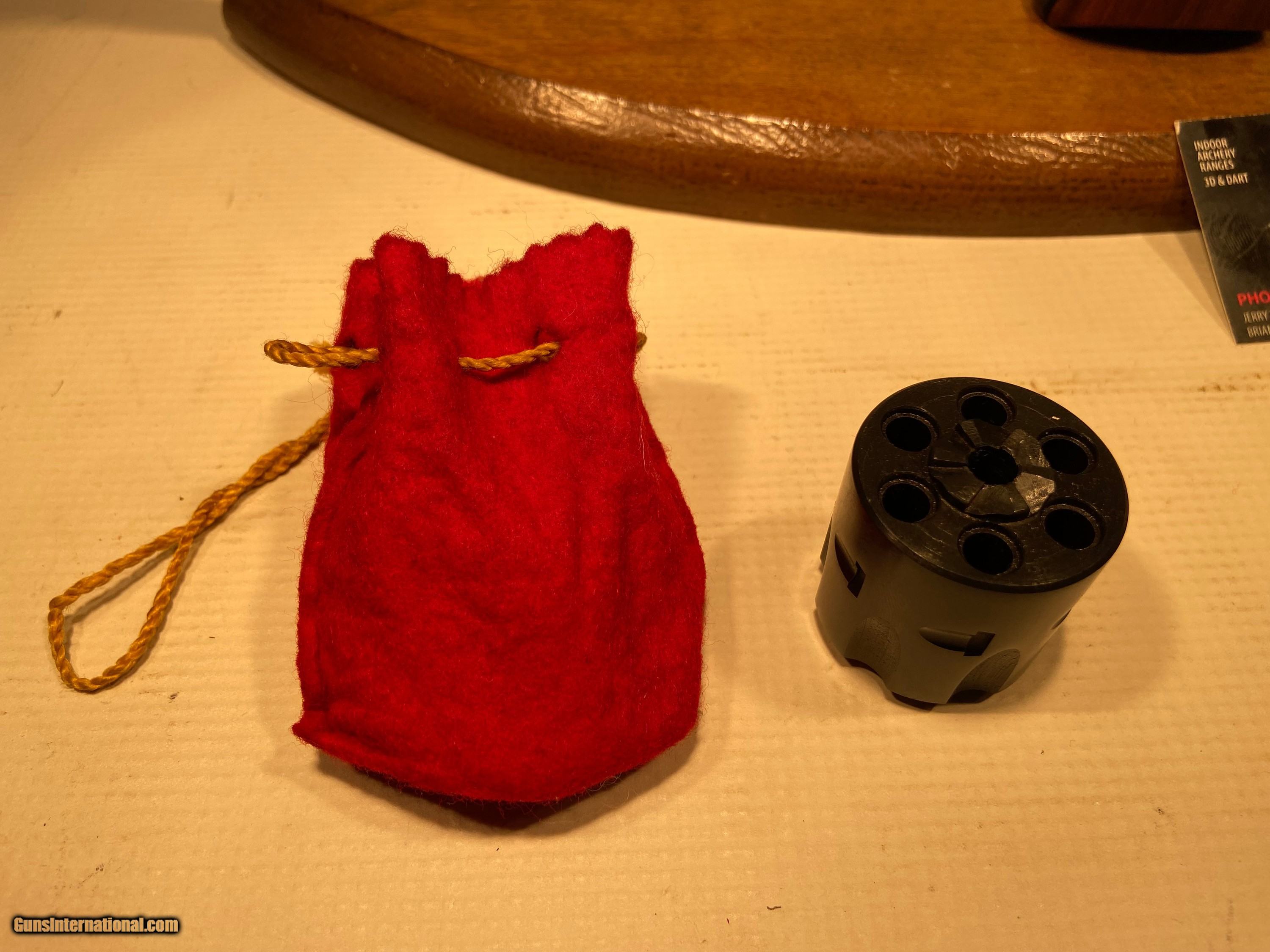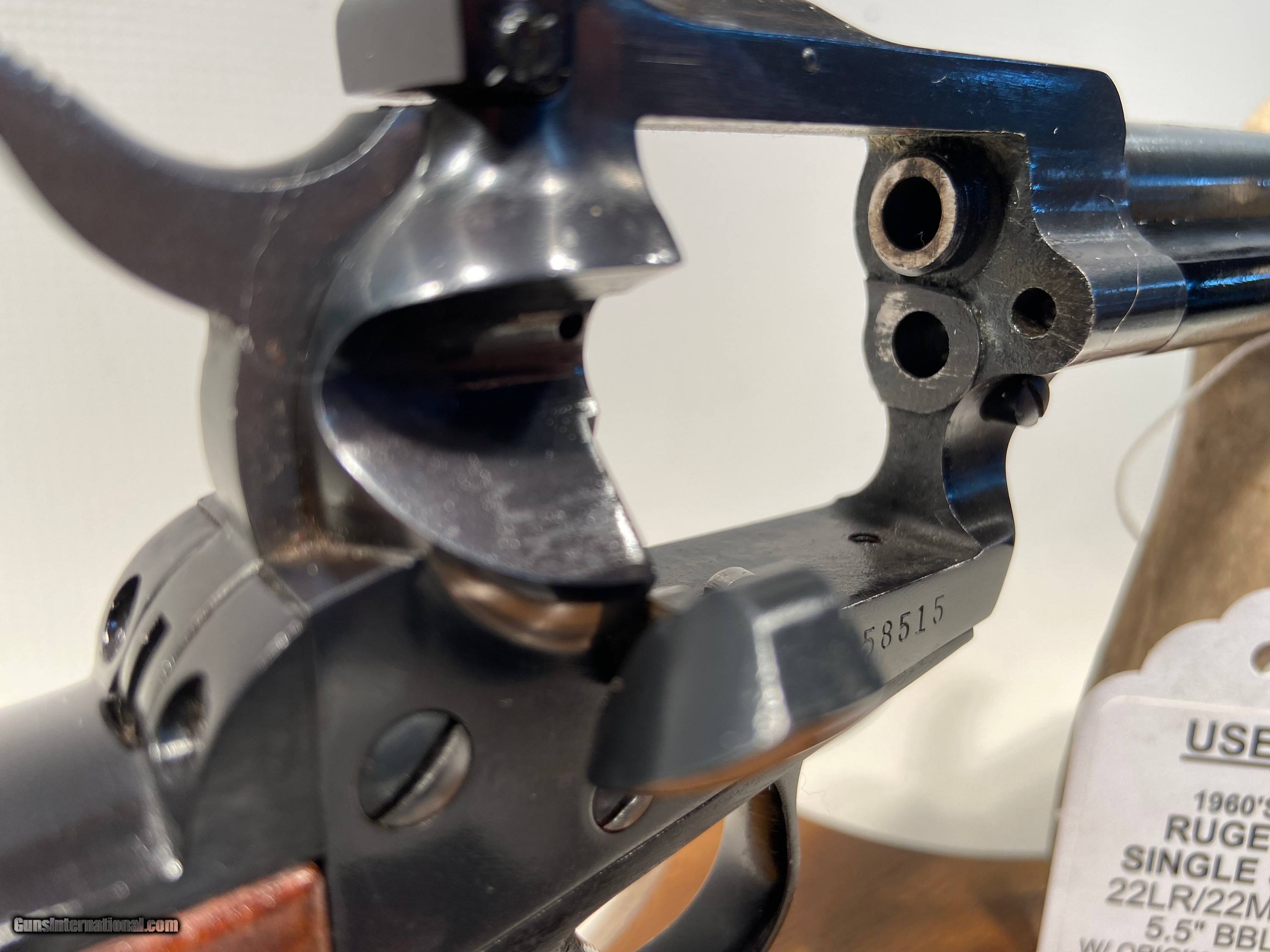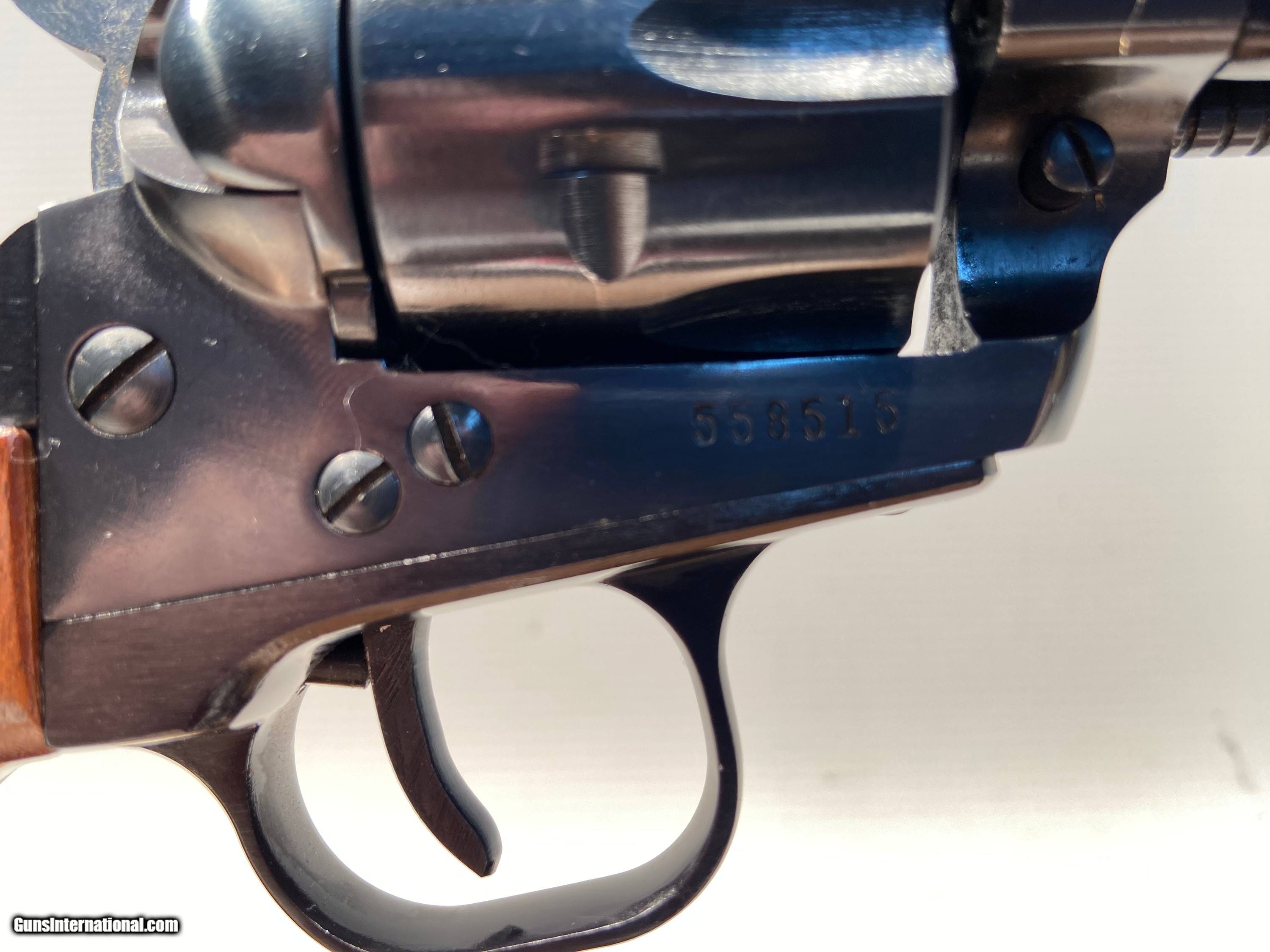Description: Here we have a Ruger Super Single Six Convertible 3 Screw 22 Lr / 22 Mag with a 5 1/2" barrel. This was manufactured in the 1960s and comes with the original books, original grips, and cylinder bag. This revolver is in MINT condition! The bore is in 98% condition, the grip is in 98% condition and the overall condition is 98%! It doesn't get much beter than this! ALL SALES ARE FINAL. PLEASE CALL WITH ANY QUESTIONS BEFORE PURCHASING. SOLD Handgun Caliber: .22 Long Rifle, .22 WMR (.22 Magnum) Manufacturer: Ruger Model: Super Single Six Convertible 3 Screw Serial Number: 558515 Barrel Length: 5 1/2 Condition: 98 Wood Condition: 98 Bore Condition: 98 Action: Single Action |