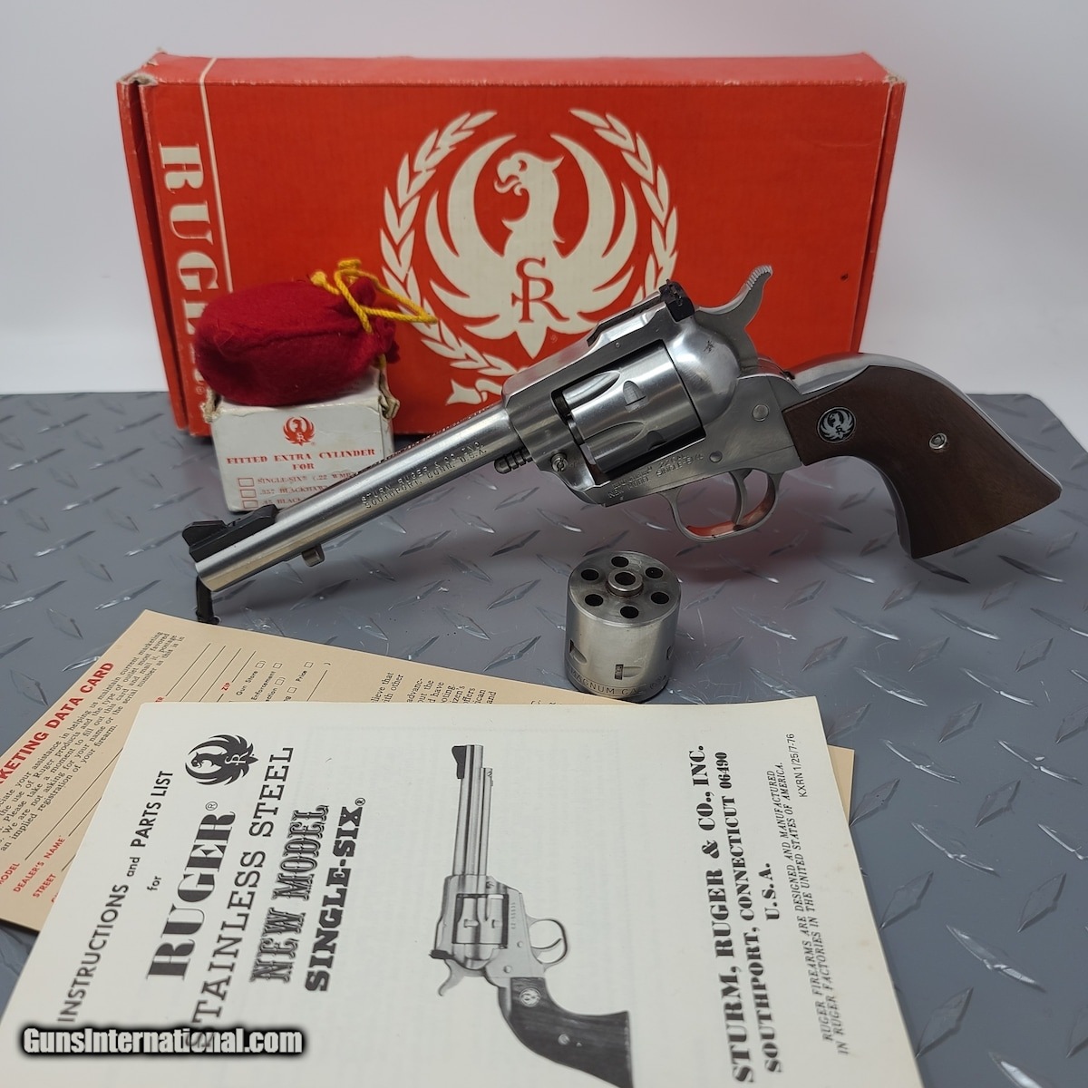 Description: Guns Listing ID: 530779 Like New Ruger New Model Super Single Six Convertible Bicentennial revolver. This firearm includes original paperwork, 22 mag cylinder, and original box. Perfect for any ruger collection! SOLD Manufacturer: STURM, RUGER & CO., INC. Model: New model ssm Caliber Info: 22 Condition: Used - Non-Certified Barrels: 5.5 BARREL Finish: STAINLESS |