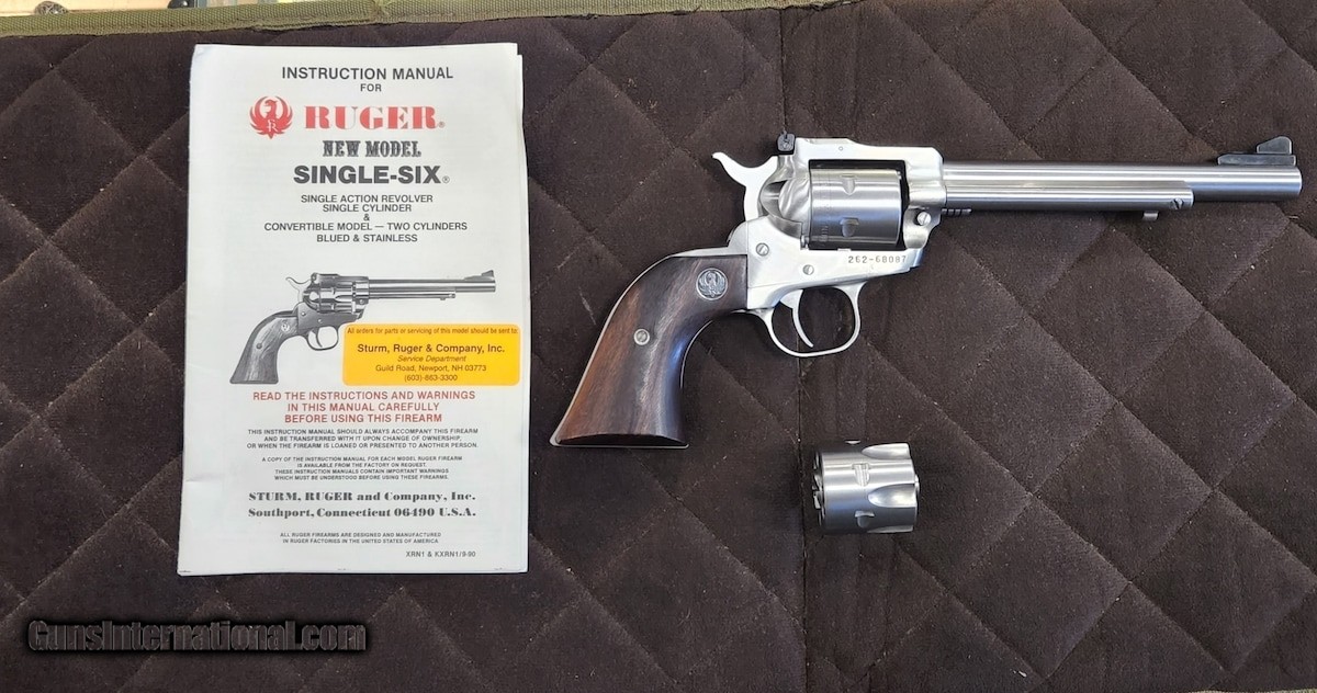 Description: Guns Listing ID: 515757 Good condition Ruger Single-Six with .22 LR and .22 WMR cylinders. Comes with owner‚‚s manual and softcase. Frame, topstrap and cylinder have some small scratches(see pictures). Local sales take priority SOLD Manufacturer: STURM, RUGER & CO., INC. Model: Single-Six Caliber Info: .22 LR /.22 WMR Condition: Used - Non-Certified Barrels: 6.5 BARREL Finish: STAINLESS |
