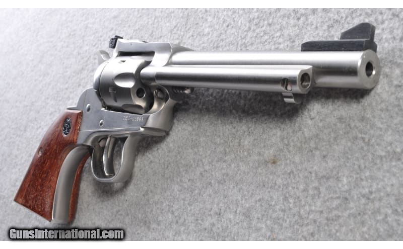 Description: Shipped in 2001, this New Model Single Six is in great shape .22 Long Rifle/.22 Mag SOLD Chambers: .22 Long Rifle or .22 Winchester Magnum Rimfire in six round revolving cylinders Metal Condition: "Very good, shows little wear Wood Condition: "Very good, appear near new Bore Condition: Sharp and bright Barrels: 6 1/2" Stainless Steel Triggers: Single Action Weight: 40 Oz. Sights: "Fixed blade front, Micro adjustable leaf rear Item Location: Grand Junction, CO |