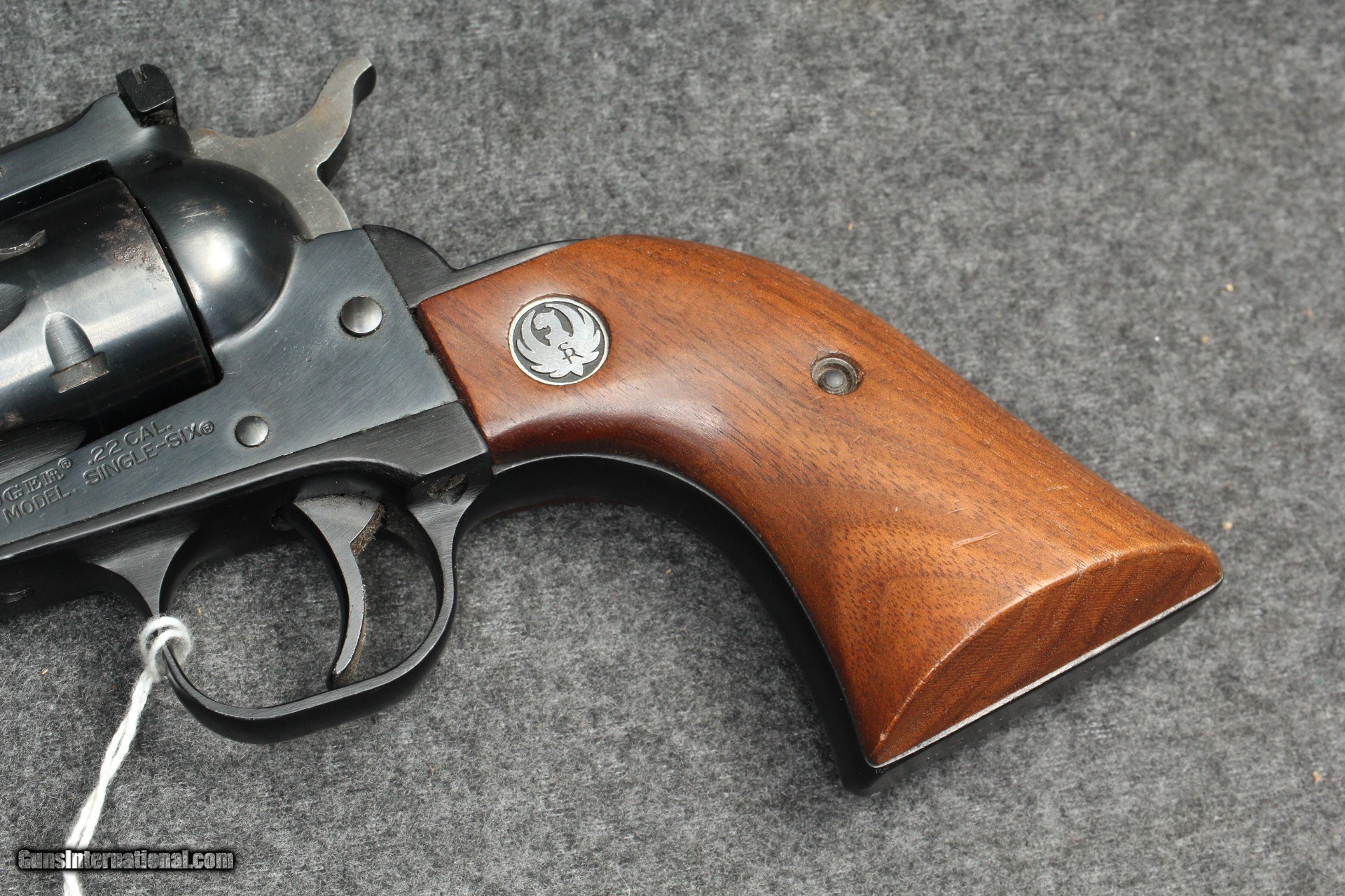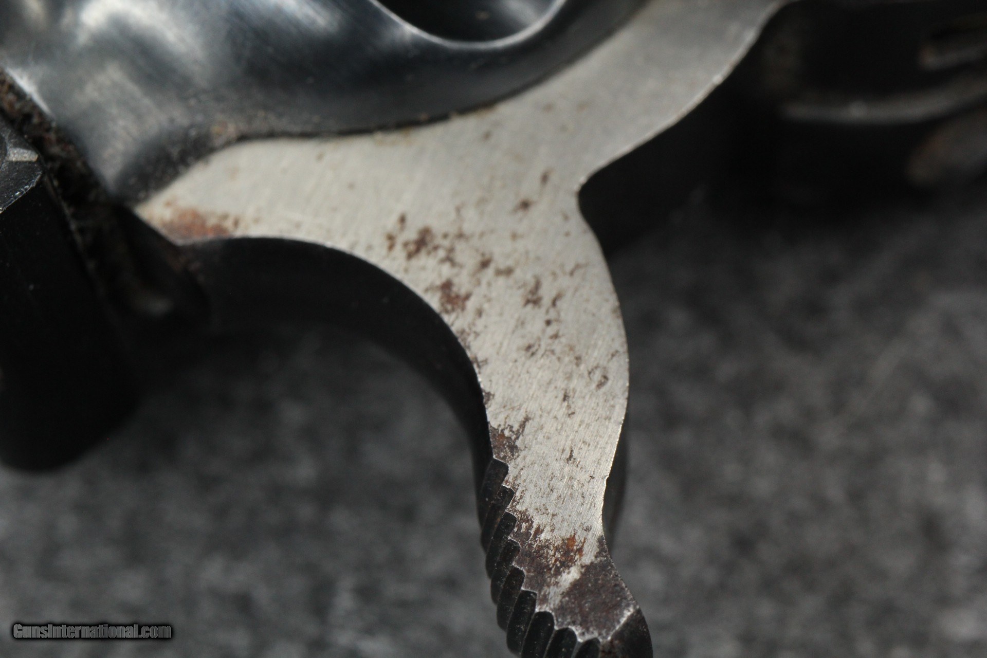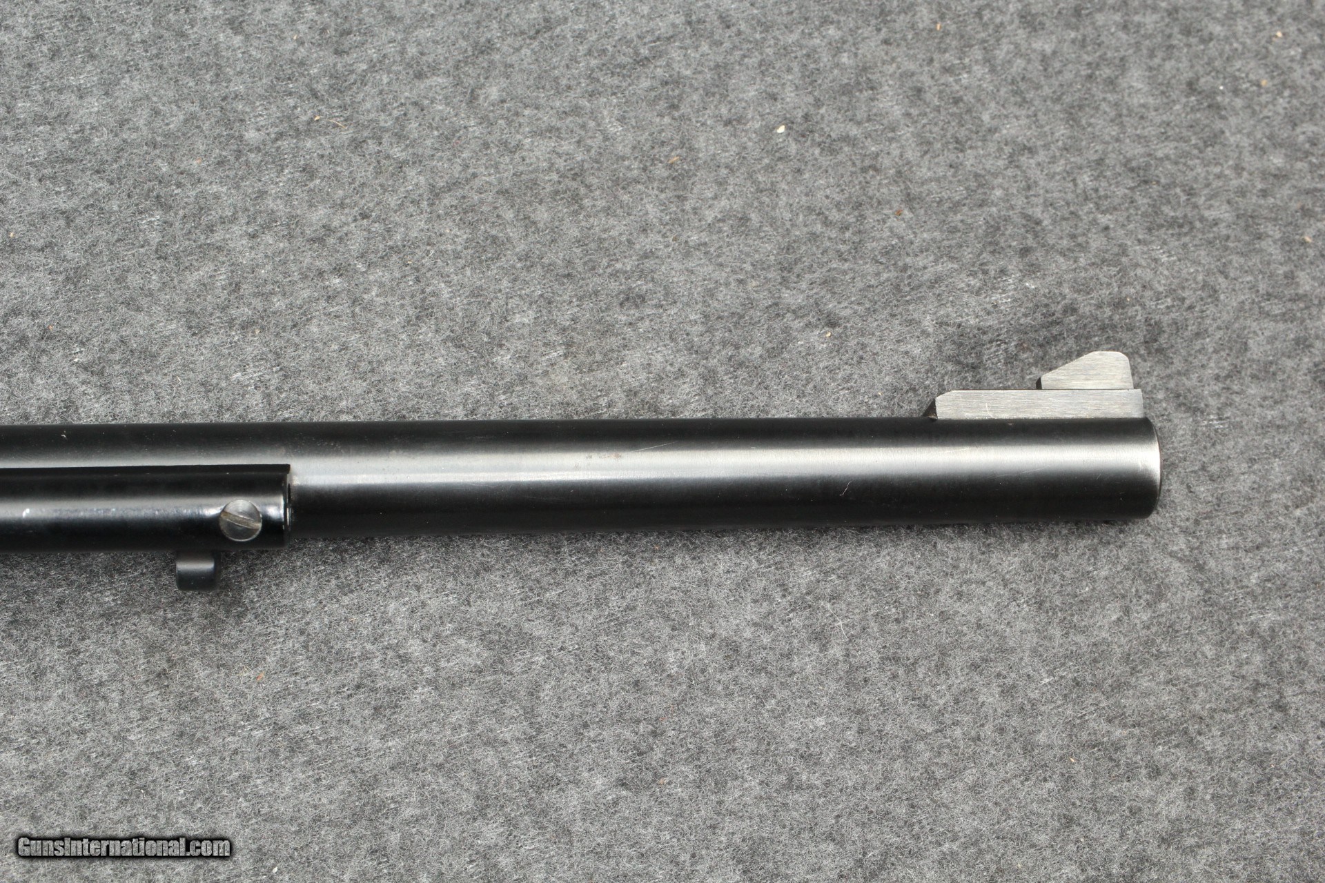 Description: Serial number 63-162XX. Mfg 1974. 9.5" barrel. New model Single Six convertable but only comes with 22 Mag cylinder. Previous ower's drivers license on bottom of grip frame. Overall in good condition, shows normal wear. Moderate blue wear at muzzle, cylinder ring and small spots of rust on frame, hammer and cylider. Bore is excellent. More photos on request. Plesae add $45.00 for shipping and insurance. Will ship to C&R. SOLD Curio/Relic: Yes Handgun Caliber: .22 WMR (.22 Magnum) |