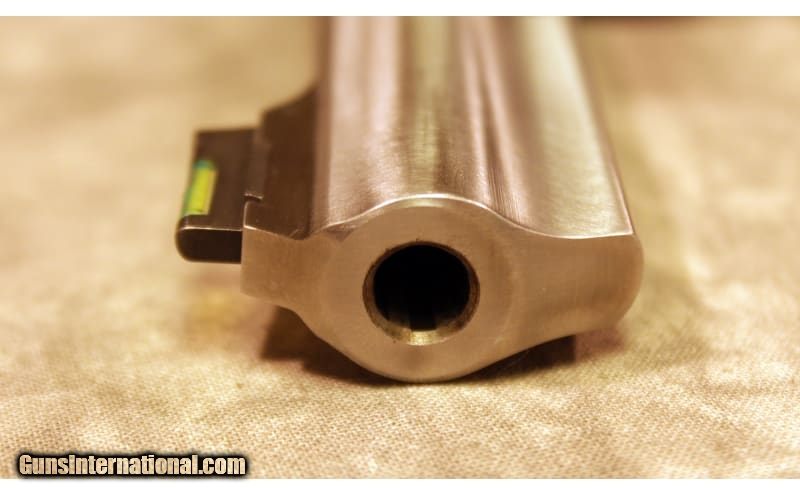 Description: Cushioned rubber grip with hardwood insert has no exposed metal in the backstrap, making it extremely comfortable. Takedown of integrated subassemblies requires no special tools, allowing for easy maintenance and re-assembly. Fiber optic front sight and adjustable rear sight. Transfer bar mechanism provides an unparalleled measure of security against accidental discharge. Grip frame easily accommodates a variety of custom grips. Triple-locking cylinder is locked into the frame at the front, rear and bottom for more positive alignment and dependable operation shot after shot. .327 Federal Mag SOLD Barrels: 4 Inches Weight: 36 oz Sights: Fiber Optic front sight with adjustable rear Item Location: Bossier City, LA |