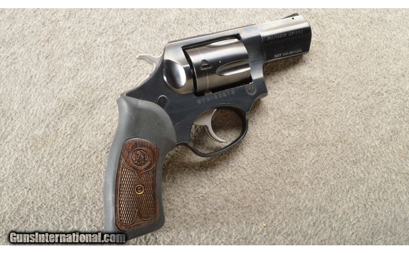 Description: This is a very nice clean Ruger SP101 revolver in .357 Magnum. The blue is like new with only a thin turn line. The black rubber and wood grips are also like new. This revolver looks to have been fired very little. .357 Magnum SOLD Chambers: 5 Shot revolver. Metal Condition: Excellent with a thin turn line. Wood Condition: The grips are like new. Bore Condition: Bright and shiny. Barrels: 3" blue with sights. Triggers: Single silver color for single and double action. Weight: 25 Oz. Sights: Notch frame rear and a blade front. Item Location: Owatonna, MN |