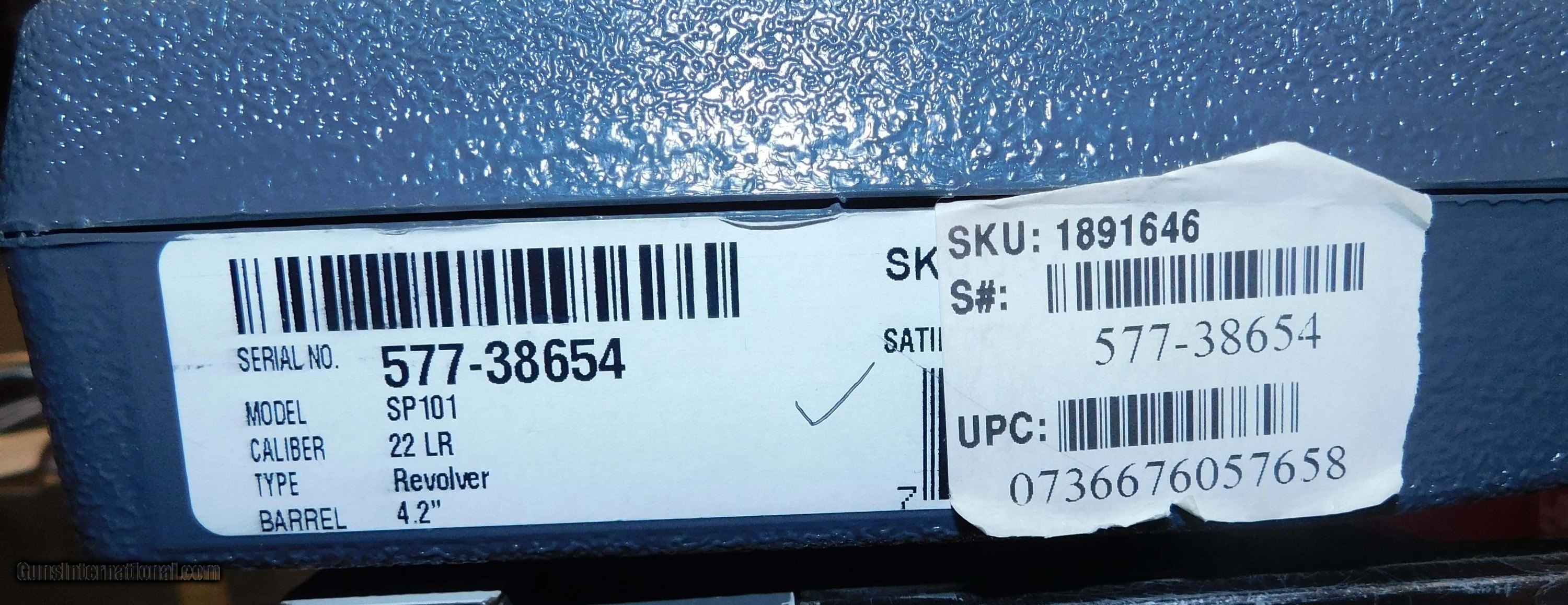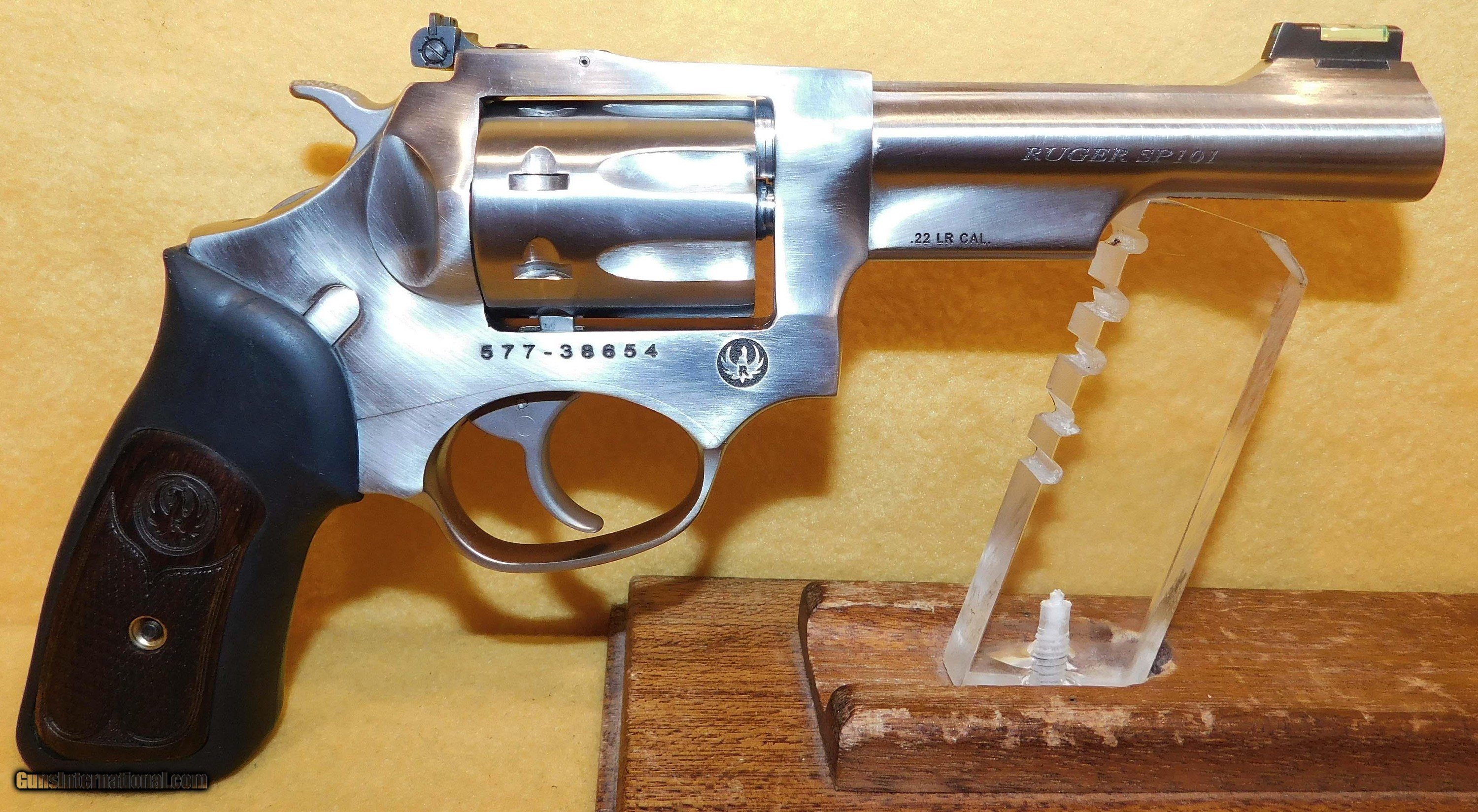 Description: RUGER SP101 (EIGHT SHOT) IN .22 L.R. CAL., WITH 4 .2" BARREL. COLOR STAINLESS STEEL. CONDITION 98% LIKE NEW CONDITION. SERIAL NUMBER 577-38654. RUGER MODEL SP101 (EIGHT SHOT) IN .22 CALIBER, MIRROR BORE, GRIPS WITH WALNUT PANELS EXCELLENT, FIBER OPTIC FRONT SIGHT WITH ADJUSTABLE REAR, COMES WITH TWO ALL METAL EIGHT ROUND SPEED LOADERS, HARD CASE WITH PAPERS, 98% LIKE NEW OVERALL CONDITION, OUR STOCK # D3329 SOLD |