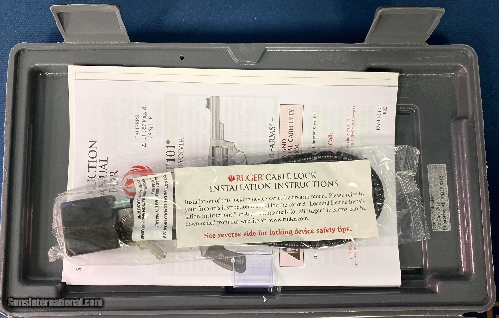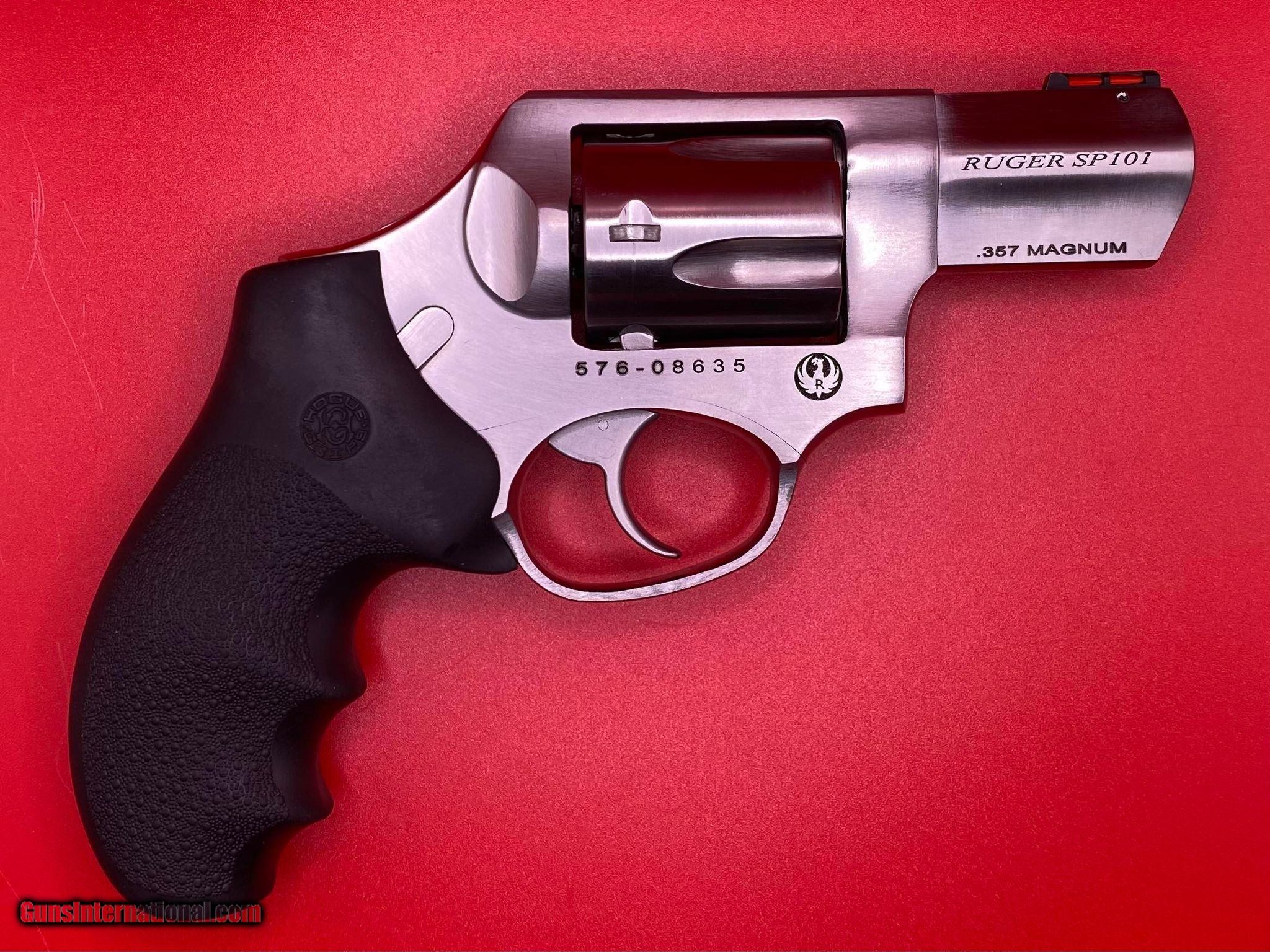 Description: Guns Listing ID: 825068 The Ruger SP101 revolver features a smaller Ruger cushioned grip system with no exposed metal at the back strap for shooter comfort. The patented triple locking cylinder mechanism securely locks the cylinder into the frame at the front, rear, and bottom. Its stainless-steel frame has no weakening side plates. This SP101 model has a 2.25\" stainless steel barrel, frame, and cylinder. It also has a black rubber grip with a black synthetic insert, black ramp front with an integral rear sight, and a spur less hammer. Brand: Ruger Category: Revolvers Caliber: 357 Mag Model: SP101 Capacity: 5rd Action: DAO Frame Finish: Satin Stainless OAL: 7.20\" Frame Material: Stainless Steel Sights: Ramp Front, Fixed Rear Barrel Finish: Satin Stainless Grips: Black Rubber with Integrated Synthetic Insert Cylinder Material: Stainless Steel Cylinder Finish: Satin Stainless Safety: Transfer Bar Barrel Length: 2.25\" Weight: 25 oz Frame Description: Satin Stainless Steel Hammer Style: Concealed THIS FIREARM IS SHIPPPED WITH ORIGINAL HARD CASE, GUN LOCK, ORIGINAL GRIPS, OWNERS MANUAL, AND REPLACEABLE SIGHTS. PRICE FIRM. SOLD Manufacturer: RUGER Model: SP101 (DOUBLE ACTION ONLY) Caliber Info: .357 MAG Condition: Used - Non-Certified Barrels: 2.3 BARREL |