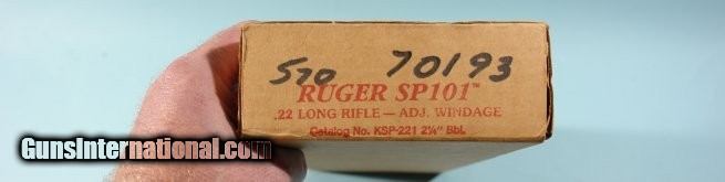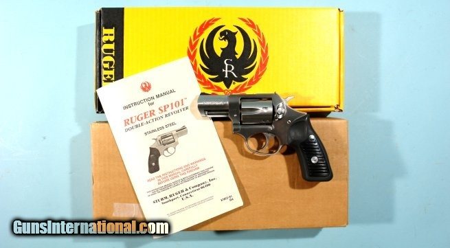 RUGER SP101 STAINLESS 22LR CAL 2 ¼” ADJ. WINDAGE REVOLVER CA. 1996 NEW UNFIRED IN ORIGINAL BOX.