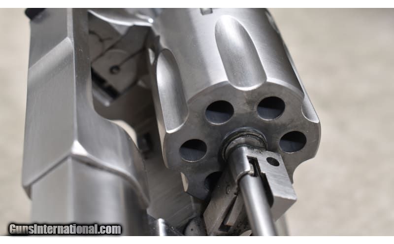 Description: Nice little "kit" gun for the hiker/fisher/hunter/trapper/target plinker. A little heavier than most, this stainless steel revolver is stable to hold and features double action trigger, and black rubber grip with black plastic inserts. There is a small amount of firing residue on the front of the cylinder, but it shows little evidence of shooting on the rest of the pistol. .22 Long Rifle SOLD Chambers: 6 rounds Metal Condition: Excellent. Wood Condition: Excellent. Bore Condition: Shiny and bright. Barrels: 4-inch Triggers: Factory double and single action trigger. Butt Pad: Grooved black plastic. Weight: 33 ozs Sights: Serrated ramp with white outline notch Item Location: Rogers |