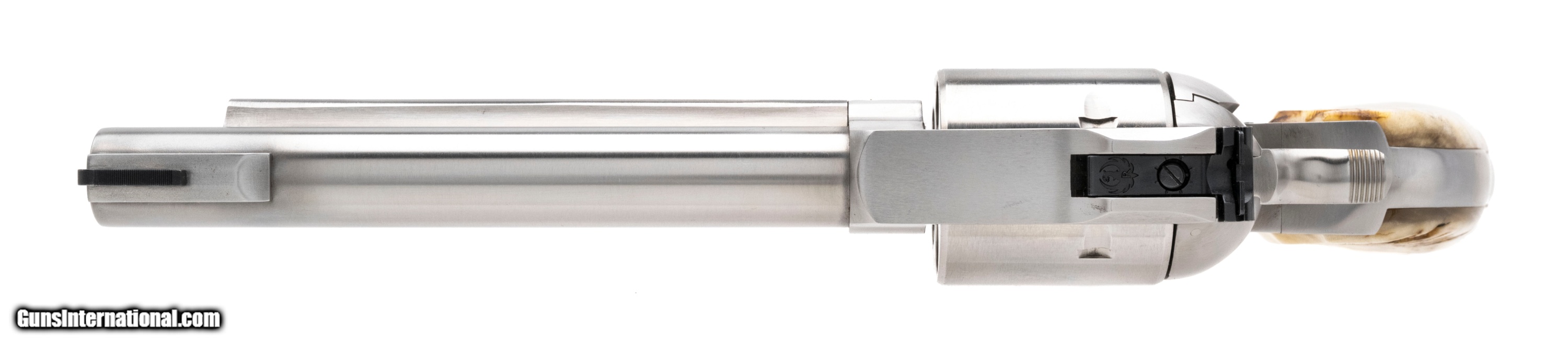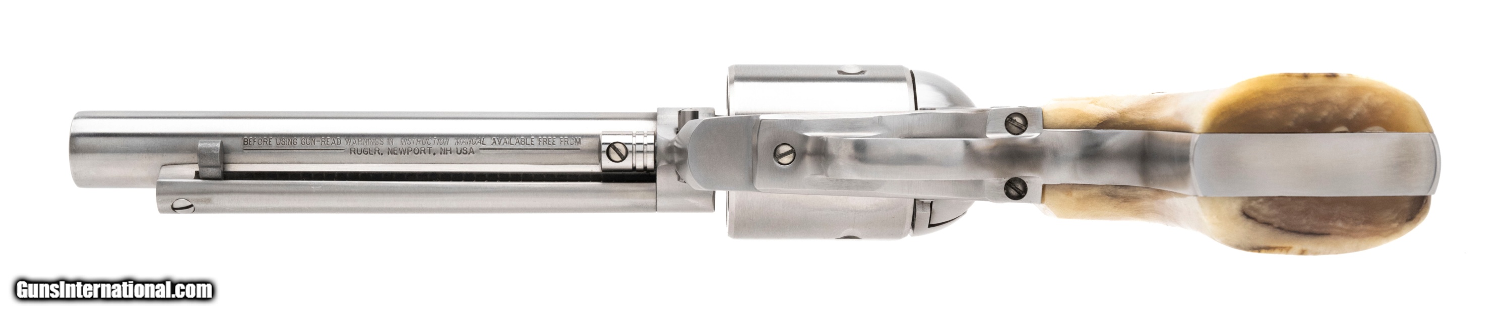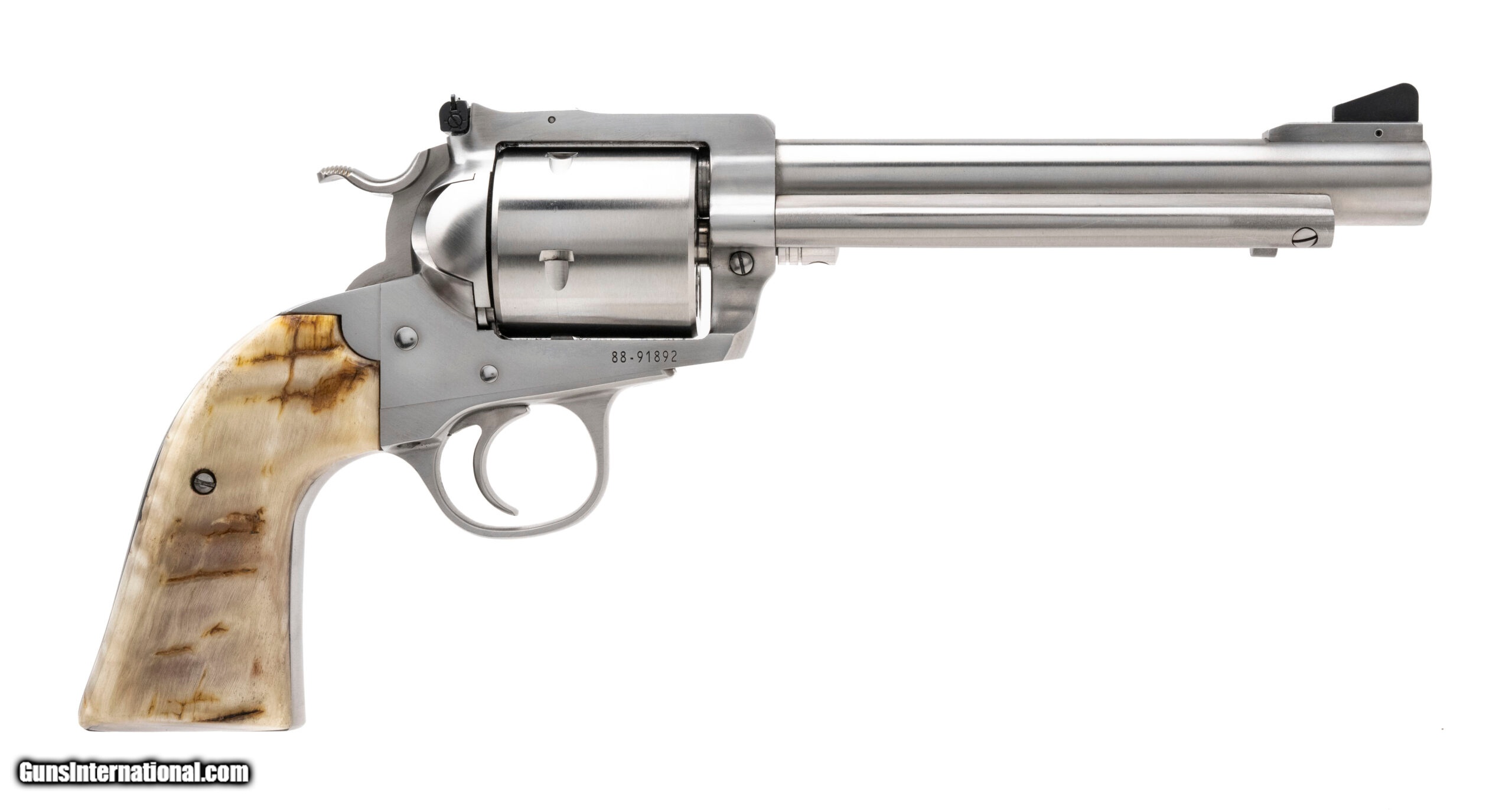 Description: "SN: 88-91892. Made in 2016, .480 Ruger with a 6.5"" barrel. Big bore stainless steel single action revolver with beautiful custom rams horn grips. Excellent overall condition. SOLD |
