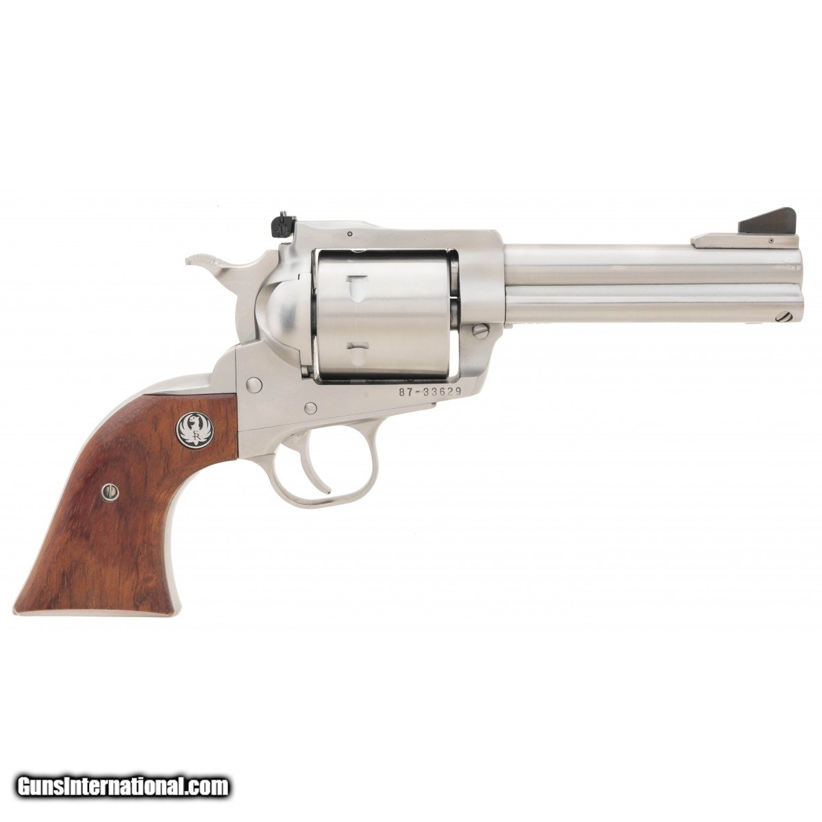 Description: " SN: 87-33629. Stainless steel sixgun with 4 5/8"" barrel. Excellent condition with box. SOLD |