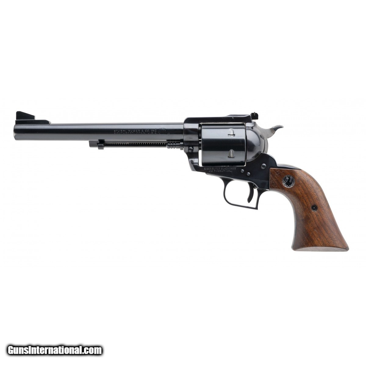 SN: 80-07143. Made in 1969. .44 Magnum with a 7.5"" barrel. Bore is bright with strong rifling. Single action revolver with an unfluted cylinder. Finish is in near excellent condition with minor thinning noted on the left side of the muzzle. Wood grips show minima wear. Overall near excellent condition.