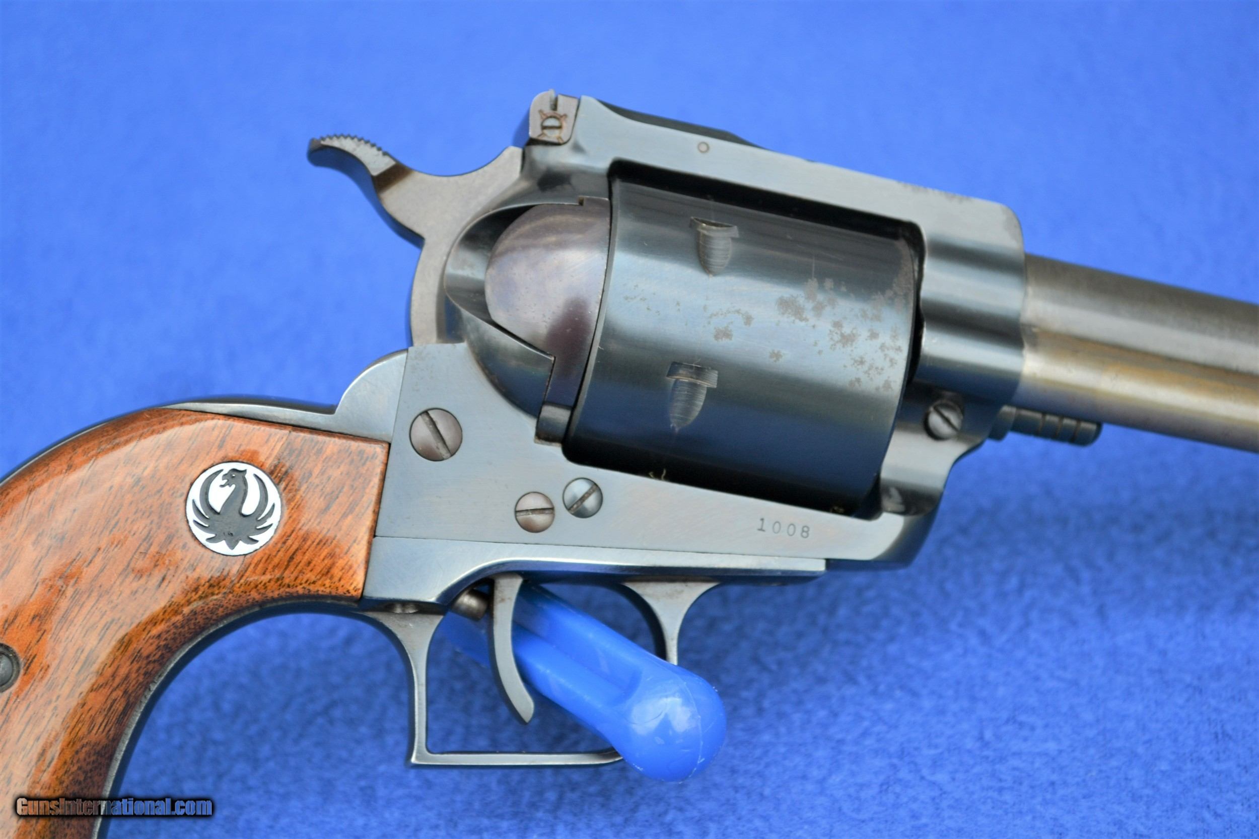 Description: 1st Year Ruger Super Blackhawk 44 Mag from 1959. Low serial number (almost a 3 digit). Has finish issues due to improper storage. Comes with early Micro marked rear sight and has not had the transfer bar safety installed. Message with any questions. Buyer to pay shipping. No sale to CA. SOLD |