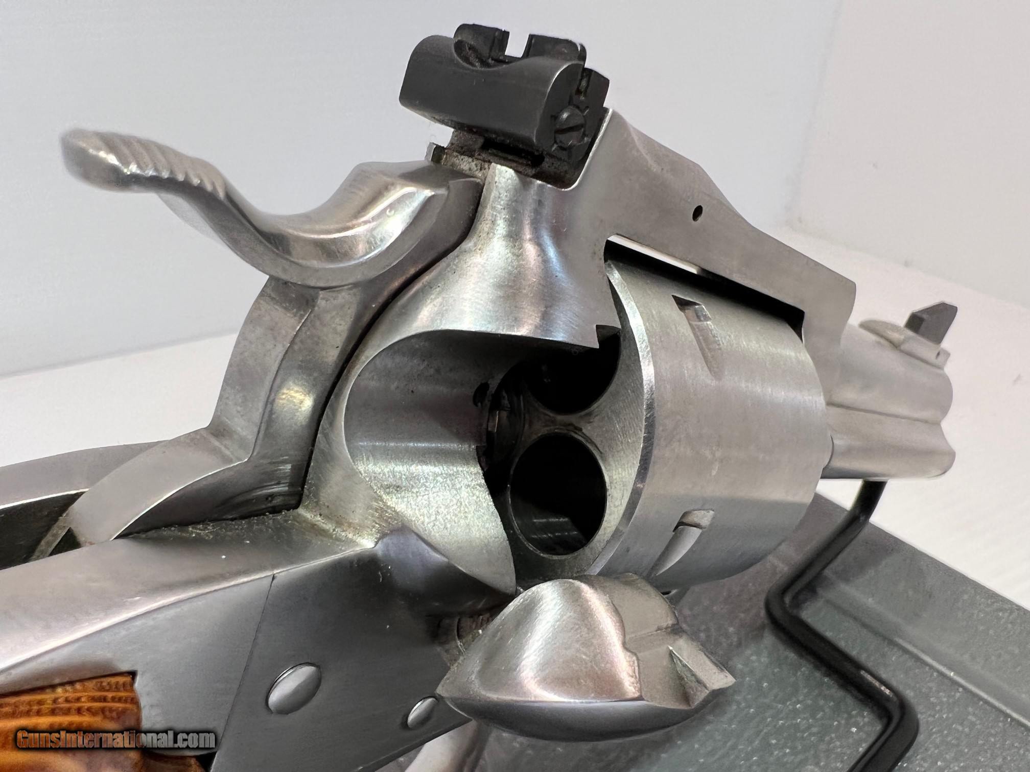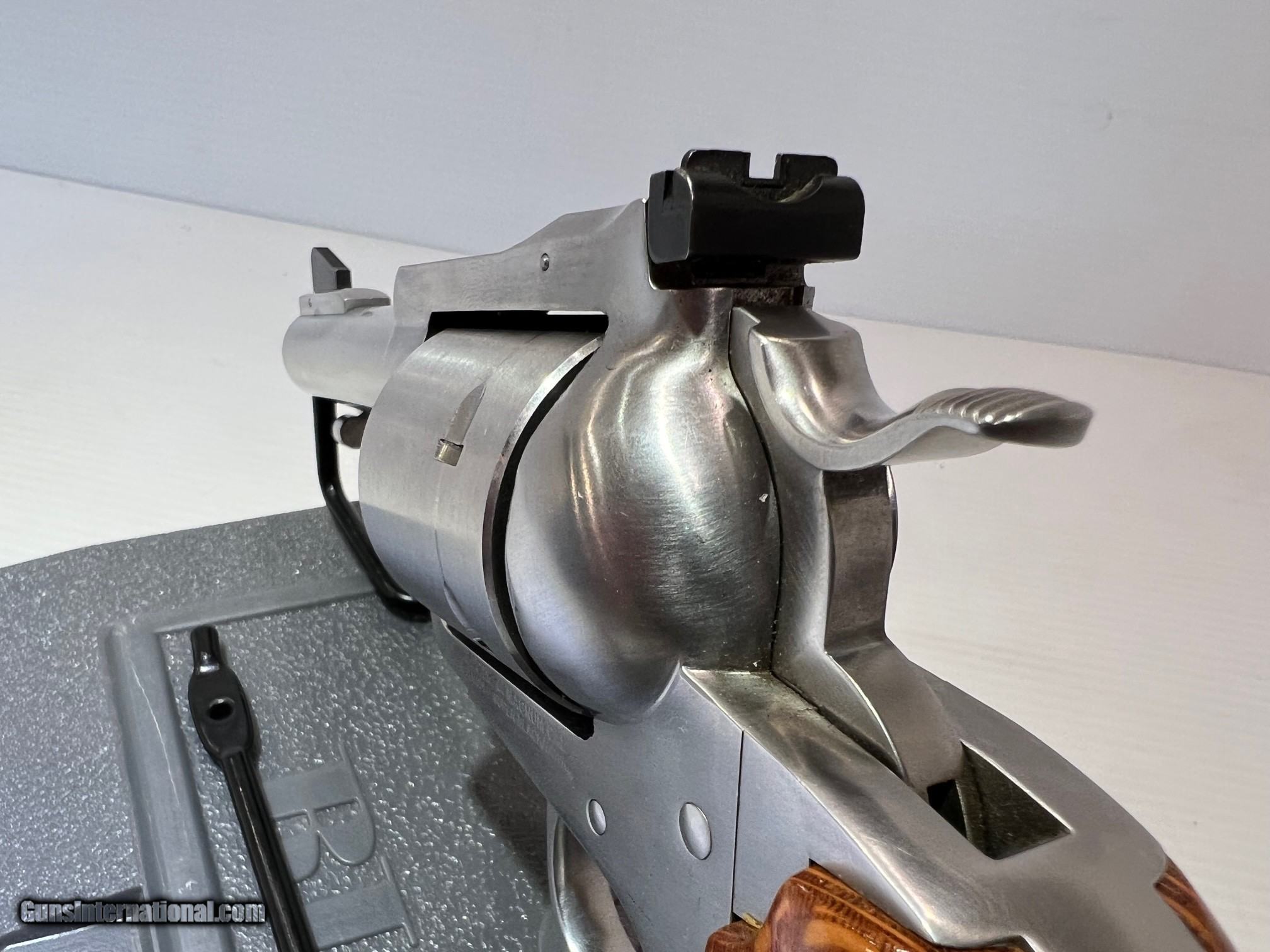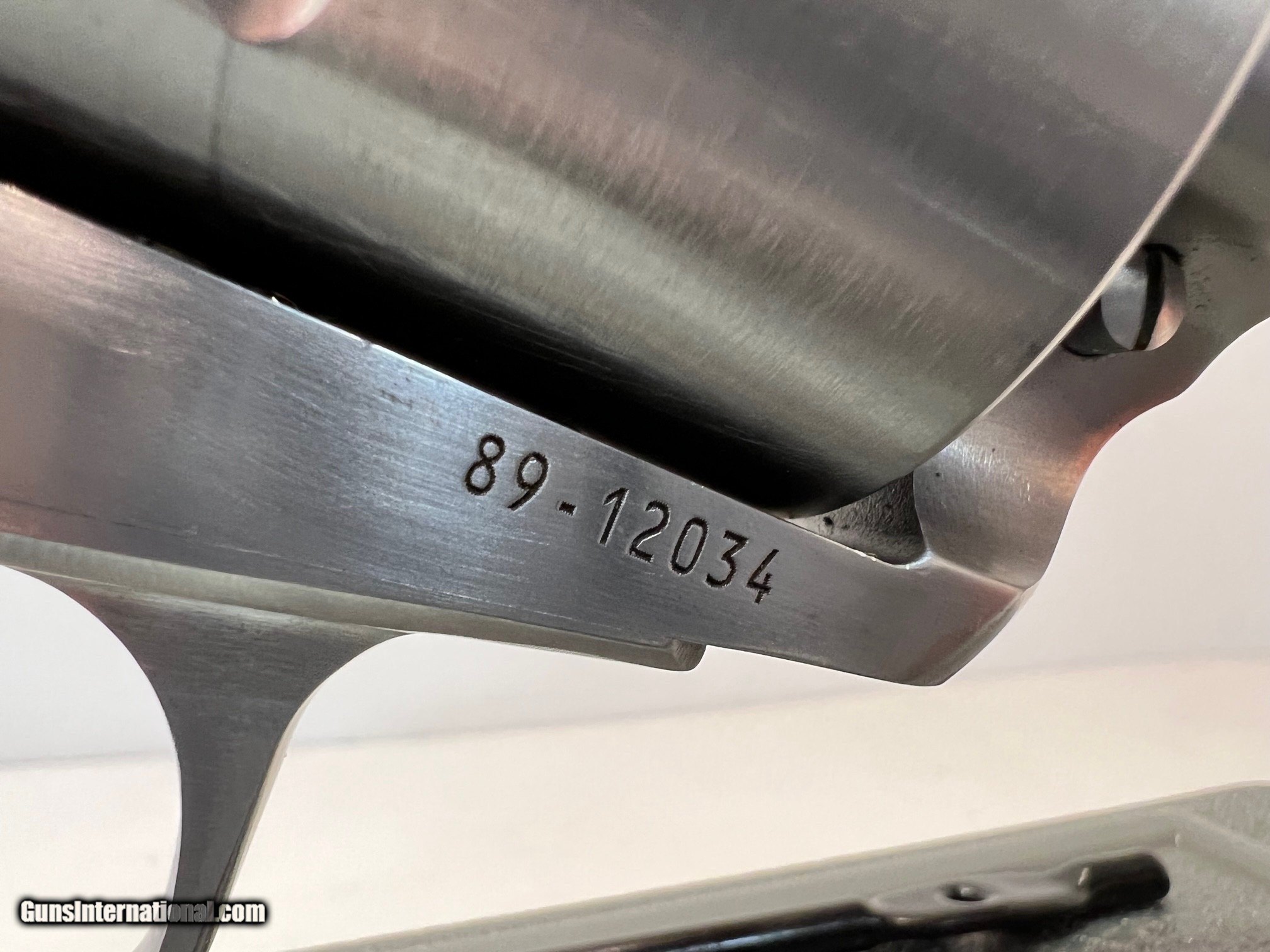 Description: Lightly Handled Ruger Super Blackhawk .44 Magnum, Single-Action Revolver, 3.75" Barrel Stainless Steel Barrel Frame and Cylinder, Wood Grips, 6-round Cylinder, With Box. WE DO NOT SHIP INTERNATIONALLY $40 Shipping. Pictures are of the item listed. Must be shipped to an FFL holder. The item is on display at our shop but will be taken off the shelf once the starting is met. Please feel free to contact us directly. Three-day inspection from date items arrives at your FFL. Payment may be personal or cashier's check, money order, or credit card "3% surcharge for credit card". QUESTIONS? CALL/TEXT STEVE AT 580.327.7372 SOLD Handgun Caliber: .44 Remington Magnum Serial Number: 89-12034 zz18993 |