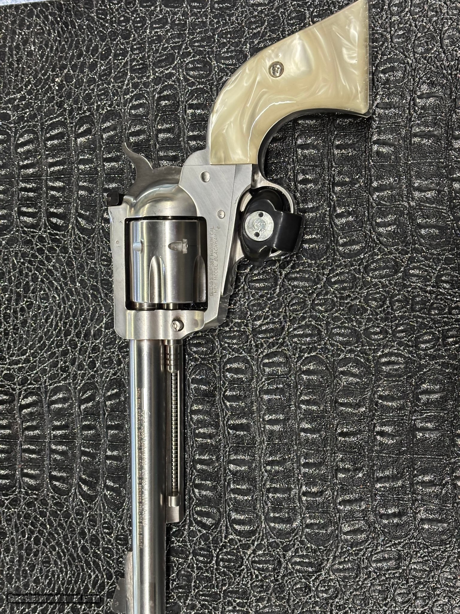 Description: Guns Listing ID: 583158 Ruger steel revolver with pearl grips, a capacity of 6 rounds as seen on images. Manufacturer: RUGER Model: BLACKHAWK Caliber Info: .357 MAG Condition: Used - Non-Certified Barrels: 6" BARREL Action: REVOLVER Finish: stainless Price: $849.99 Contact Seller |