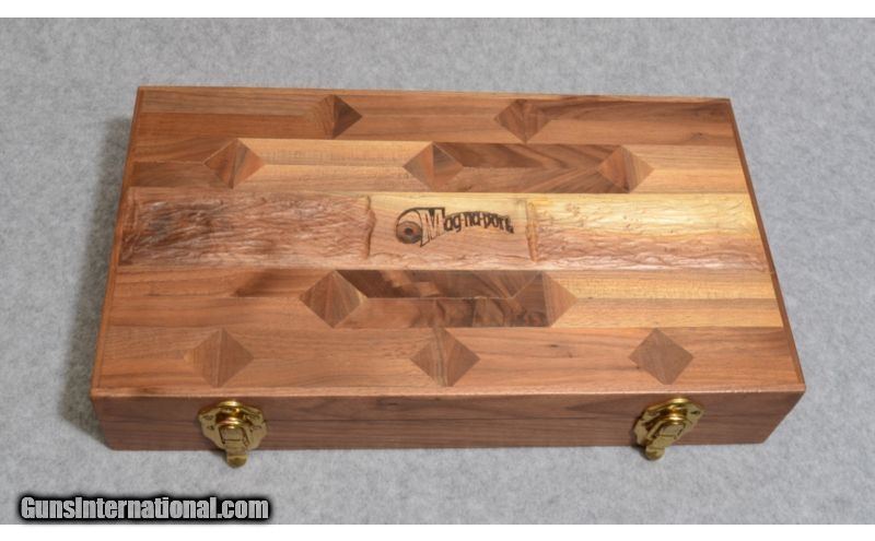 Description: The growth of handgun related sports has let to various options for recoil and muzzle lift reduction. Today Mag-na-port offers the traditional revolver porting, rifle porting, dual trapezoidal porting, and quadporting. The variety of handgun porting allows the shooter an option best suited for their needs. This gun is part of a matched pair of Magnaported and engraved hand guns. SOLD Caliber Info: .44 Mag. Chambers: Un-Spun Metal Condition: Excellent (Engraved) Wood Condition: Excellent Bore Condition: Excellent Barrels: 6 Stock: Custom Grips Weight: 54 ozs. Sights: Adjustable Extras: Comes With Wooden Display Box Item Location: Tulalip, WA |