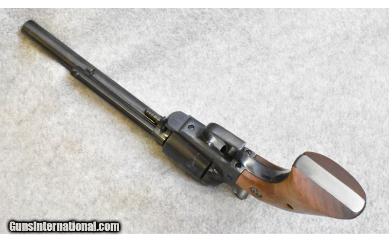 Description: New Model of the Super Blackhawk. Has the transfer bar safety. SOLD Manufacturer: 1978 Caliber Info: .44 Mag. Metal Condition: very good to excellent condition, wear ring on the cylinder Wood Condition: excellent condition, one small depression in the left grip Bore Condition: bright and sharp Barrels: 7 1/2 inch Triggers: single, grooved trigger Stock: smooth wood grips with Ruger medalions Weight: 3 lbs 1 oz Sights: fixed front blade, adjustable U notch rear Extras: none, no box or case Item Location: Kansas City, KS |